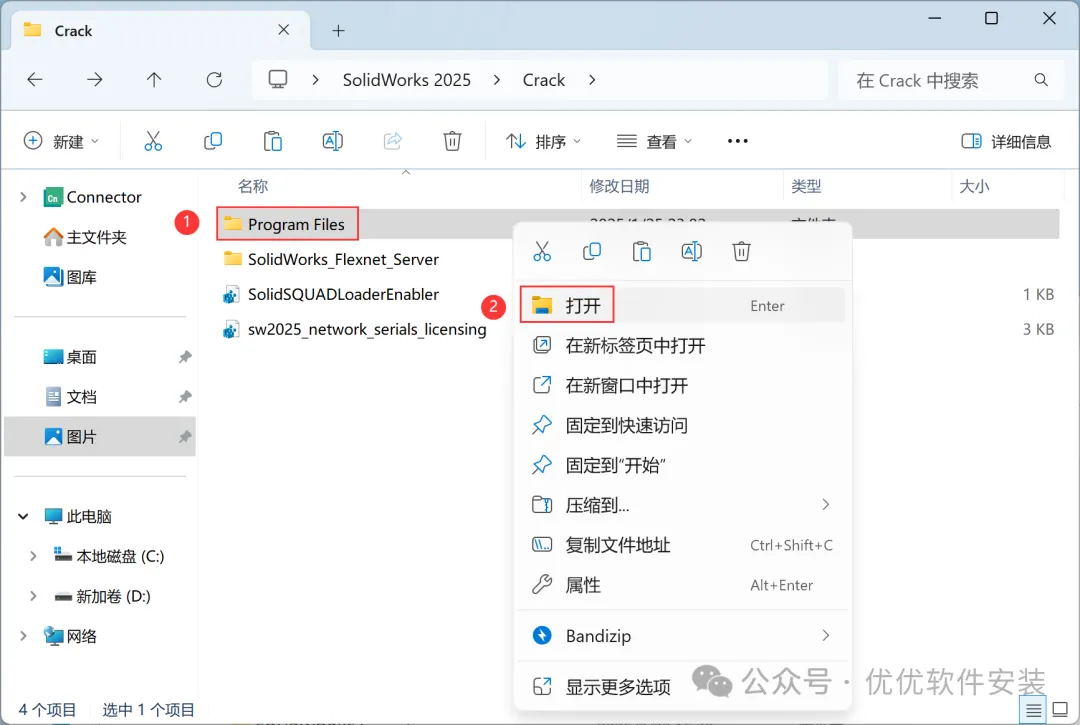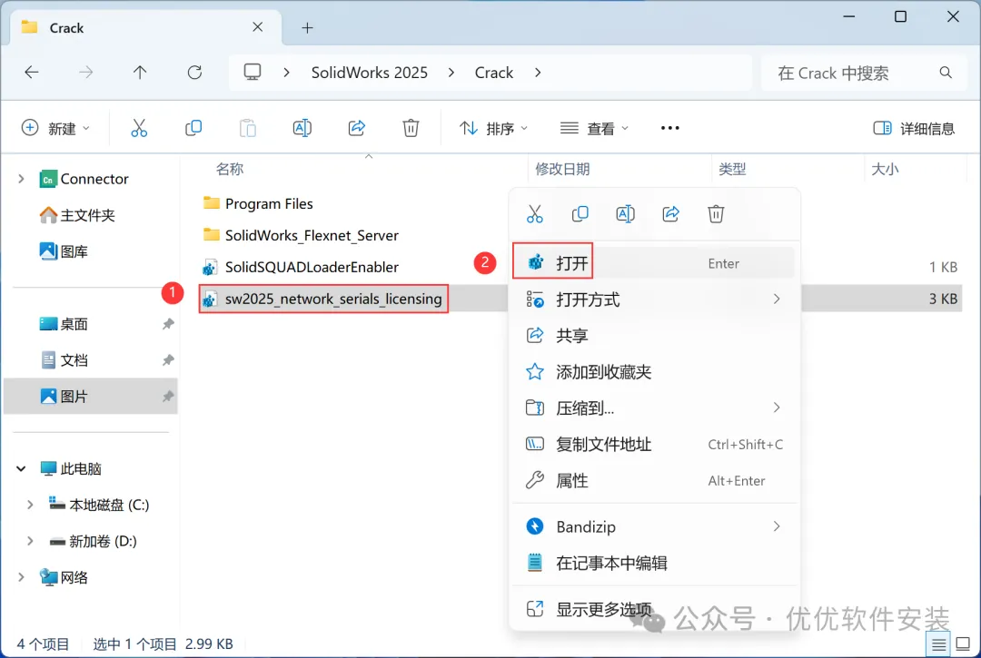 4、找到【sw2025_network…】文件,右键【打开】它