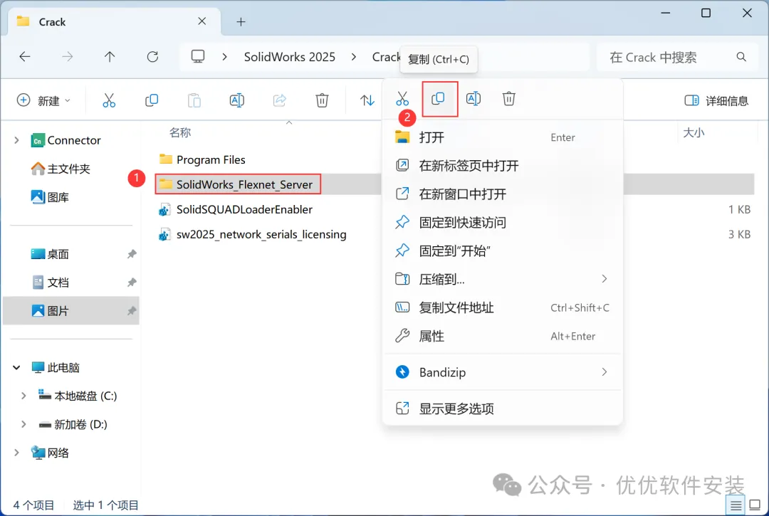 7、找到【SolidWorks_Flexnet_Server】文件夹,右键点击【复制按钮】