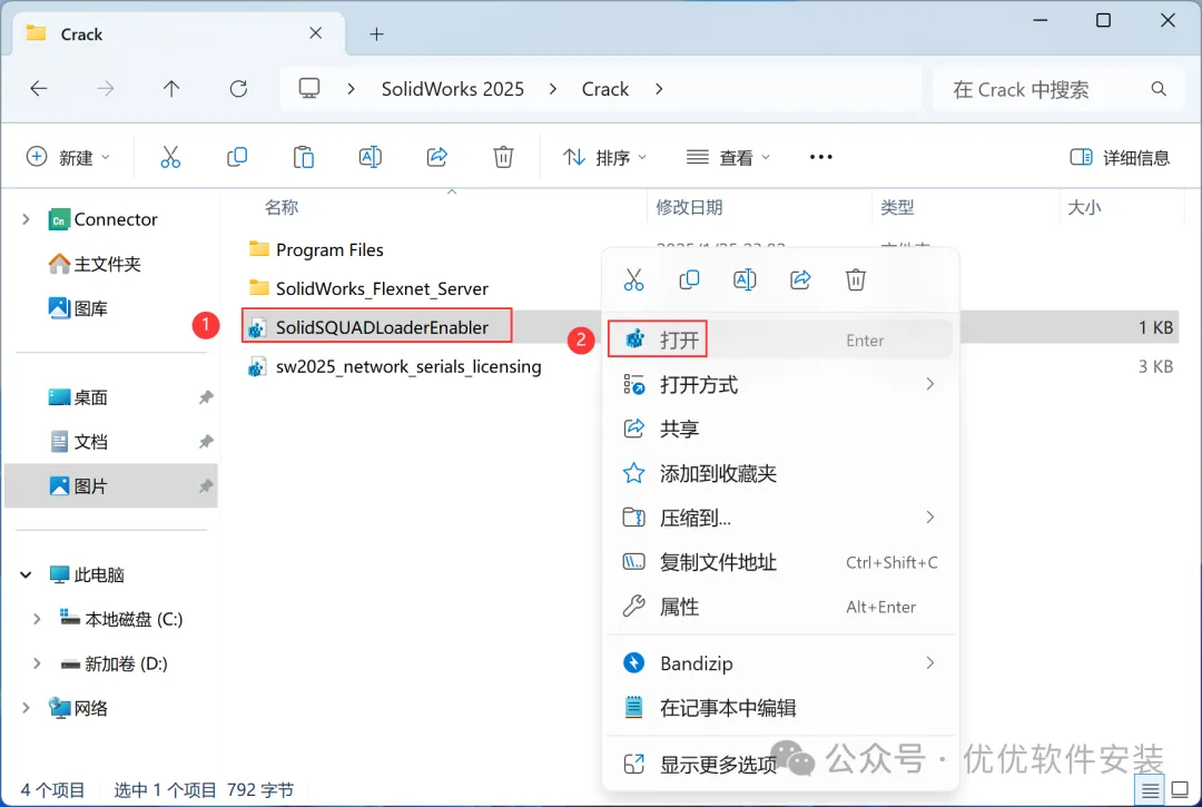 25、回到Crack文件夹,找到【SolidSQUAQLoaderEnabler】文件,右键【打开】它