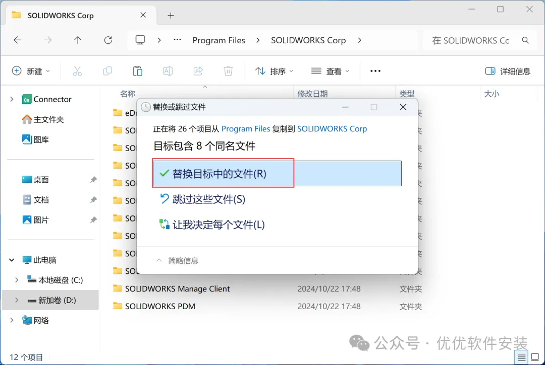 33、点击【替换目标中的文件】