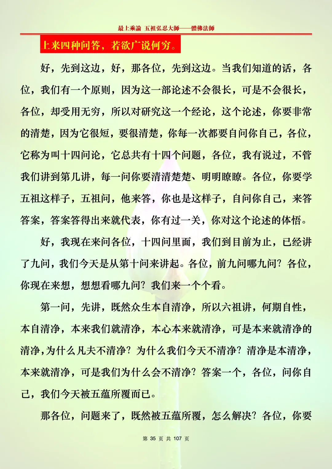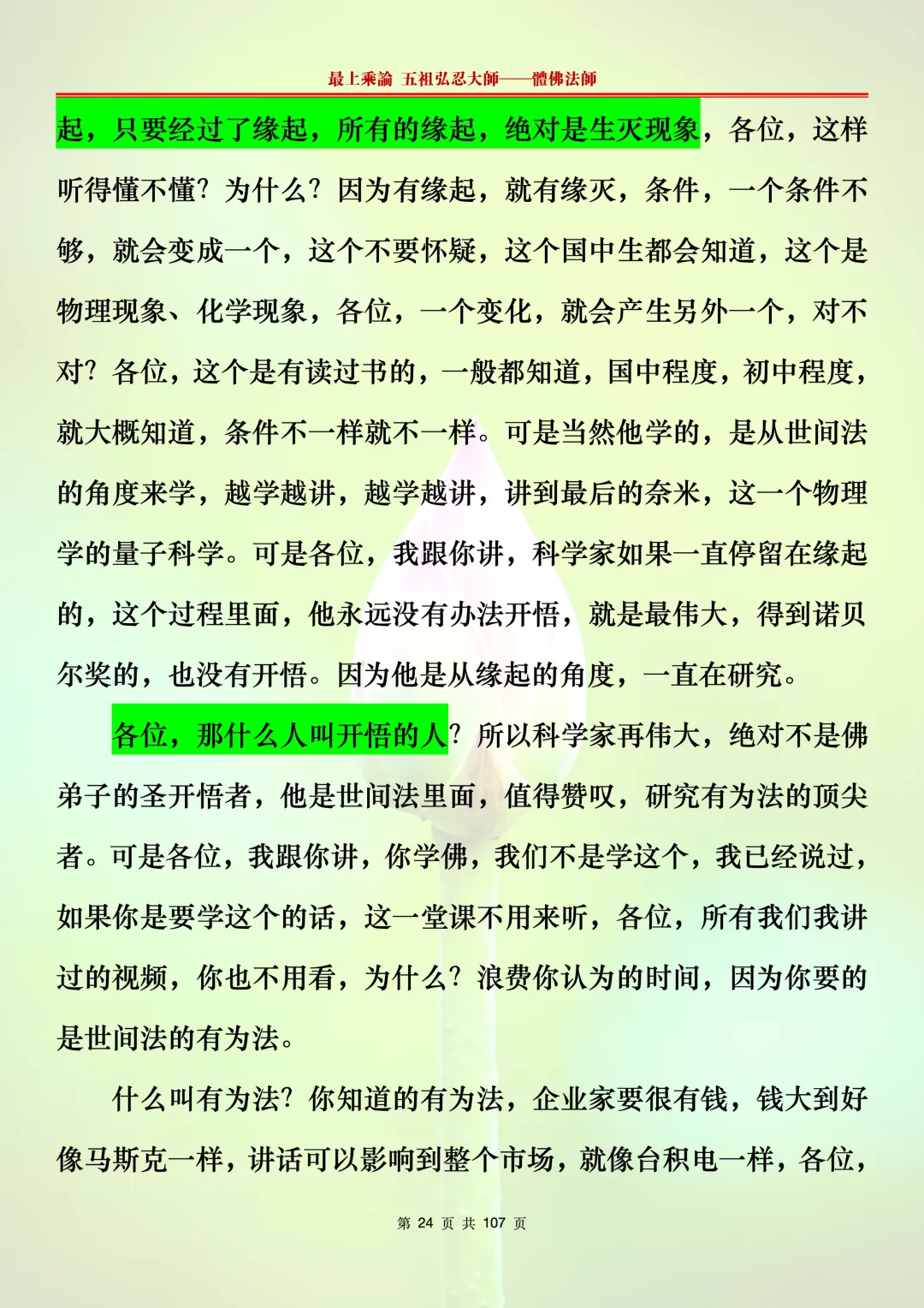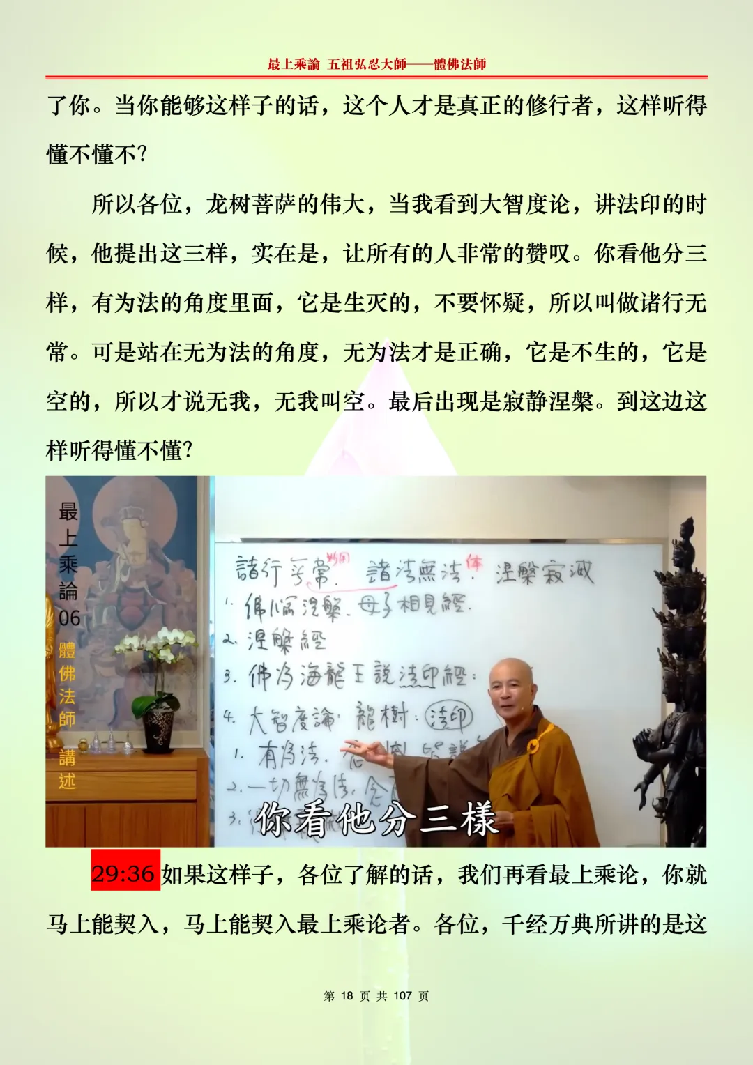 本文字文档,不出自禅院、不出自任何团队、不出自机器软件所提取的文字。本节课是个人依据法师讲解的视频,再依法师讲解的法义及语气,再根据个人的体悟,一句一句,对照视频而分成的段落,以及重点的标注。所标注的重点不代表本节课就是这样子,个人体悟不同,当然重点也就不同。文字文档,是方便没有时间观看视频的情况下使用,非作他用,大家时间充裕的情况下,重点还是应以法师讲解的视频为主。有时候一节课分成几段分享,是因为讲义时间比较长,而不得不分成两段或者三段分享,不代表什么。