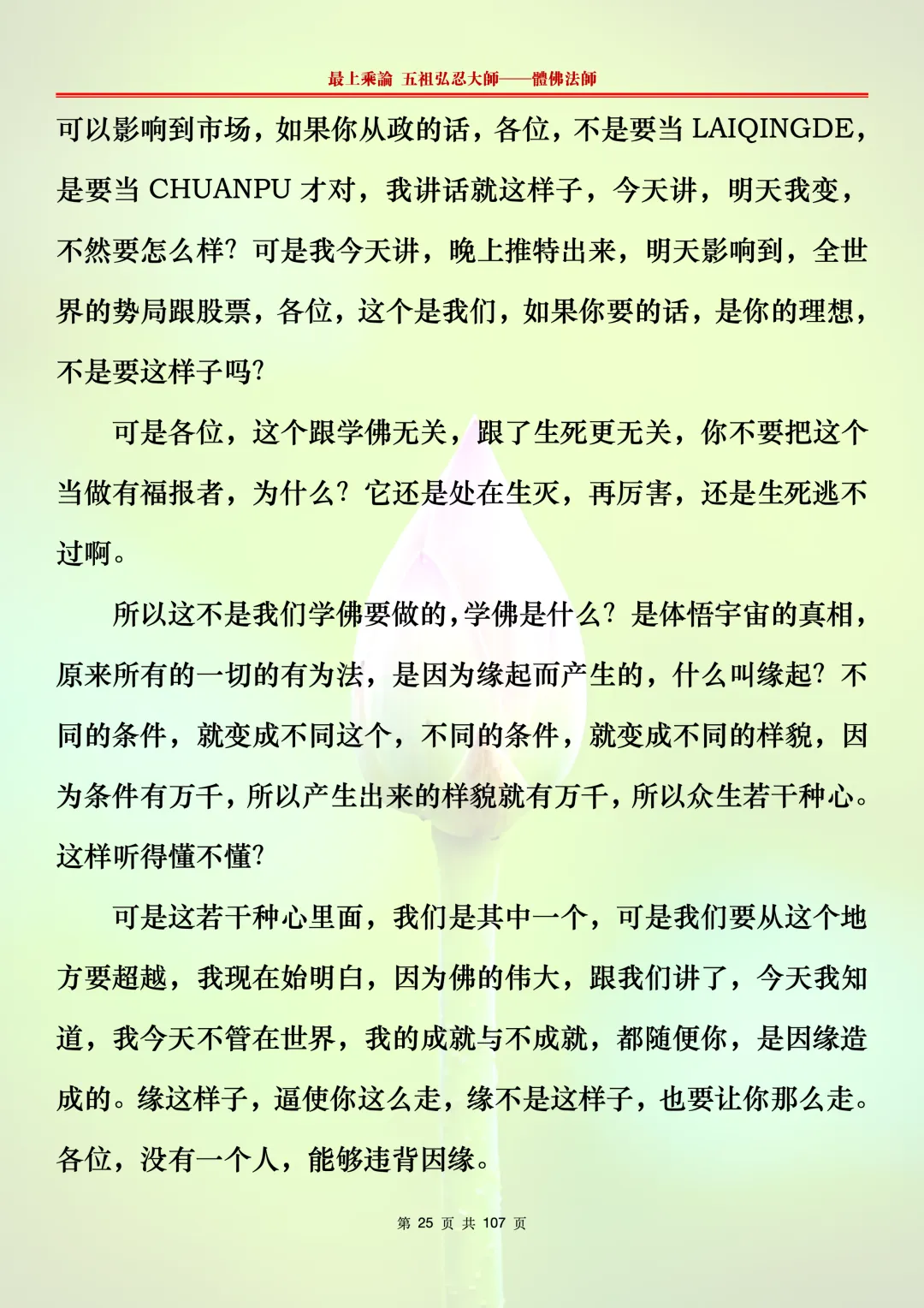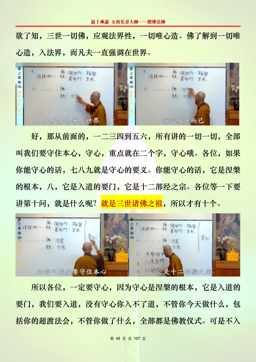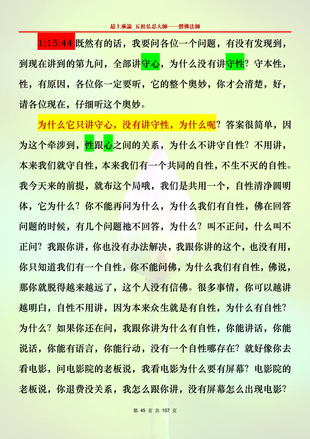 本文字文档,不出自禅院、不出自任何团队、不出自机器软件所提取的文字。本节课是个人依据法师讲解的视频,再依法师讲解的法义及语气,再根据个人的体悟,一句一句,对照视频而分成的段落,以及重点的标注。所标注的重点不代表本节课就是这样子,个人体悟不同,当然重点也就不同。文字文档,是方便没有时间观看视频的情况下使用,非作他用,大家时间充裕的情况下,重点还是应以法师讲解的视频为主。有时候一节课分成几段分享,是因为讲义时间比较长,而不得不分成两段或者三段分享,不代表什么。