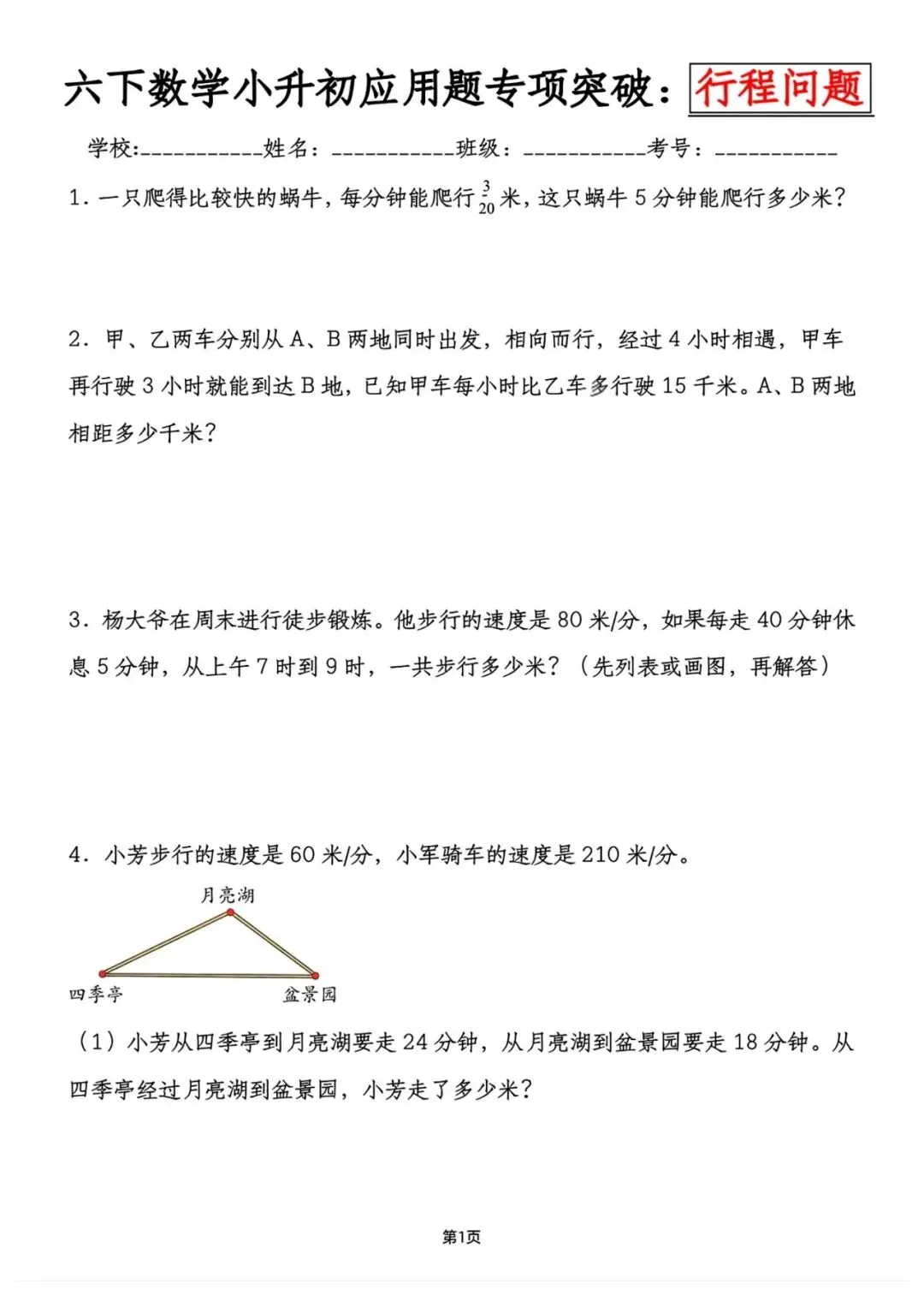 六年级下册数学小升初应用题专项突破(电子版可打印)