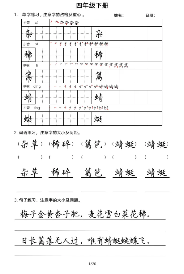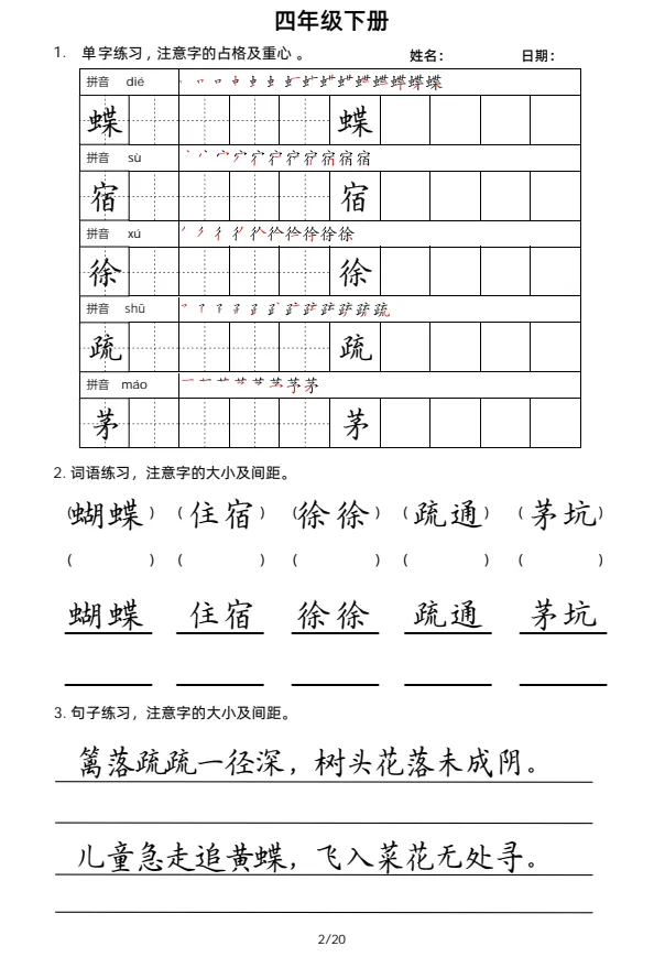 大家好,今天欣妈给大家分享的是:2026年春四年级下册语文《字词句每日小练笔》字帖,有生字练习,词语练习,句子练习;一二三四五六年级同款,电子版可下载可打印,拉至文末左下角,阅读原文处,完整电子版文章末尾可直接领取,无套路,欢迎收藏和下载。如果觉得这份资料不错,建议分享到班级群/年级群,让其他家长打印出来,帮助孩子学习;如果觉得合适,请支持正版!