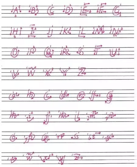 字母要按一定的笔划顺序书写,其书写笔顺如下:(请注意书写的格式和大小写的区别)