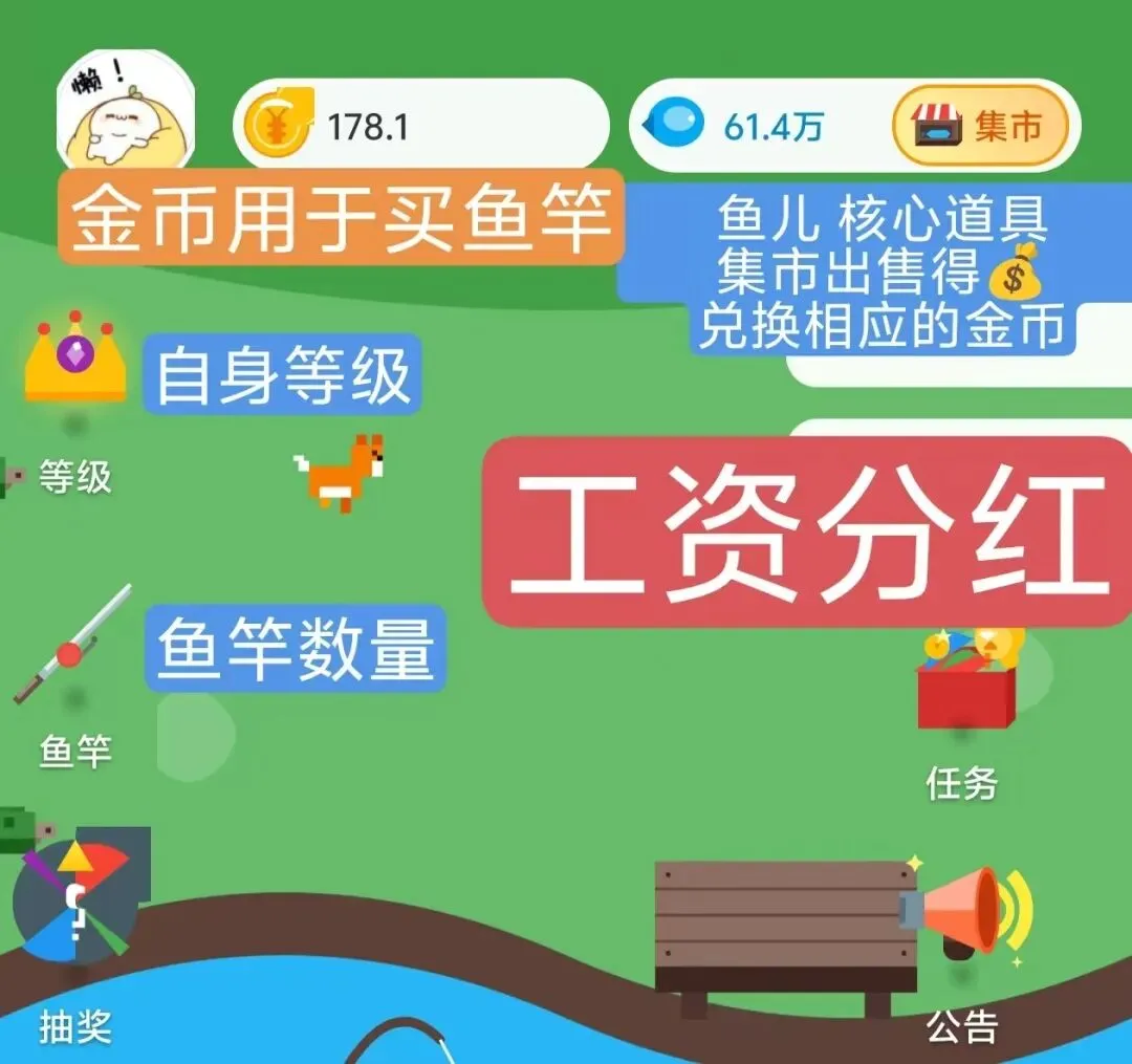兑换金币金币可继续兑换鱼竿扩大产能
