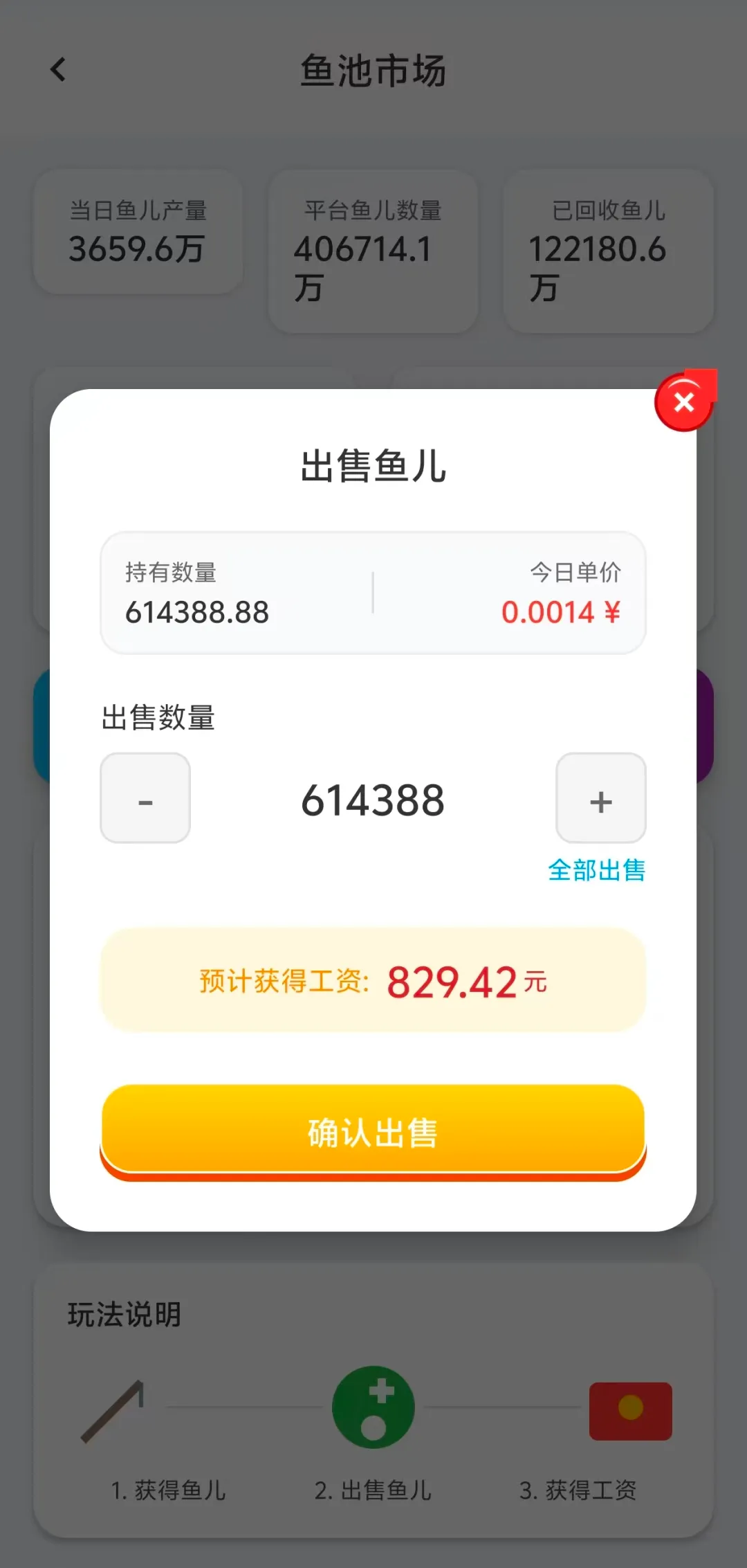 平台建立官方鱼儿回收机制,每日拿出总收益的 80% 用于鱼儿公开回收,鱼儿单价实时公示,行情透明可查 -