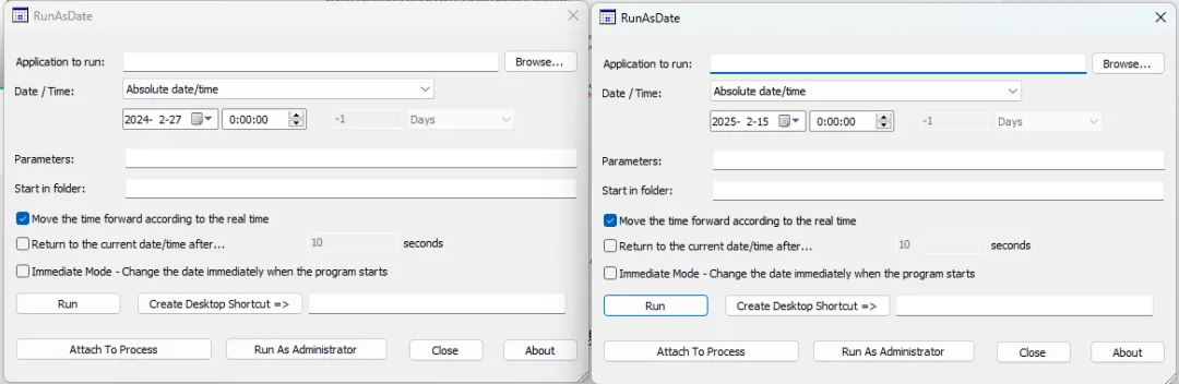 这是一个外国友人开发的项目,时间已经比较老了,网址是:https://www.nirsoft.net/utils/run_as_date.html。