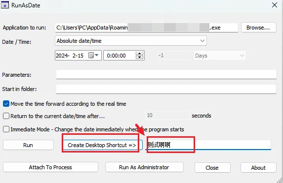 如果你想以后都用这个时间运行这个软件,可以点击Create Desktop Shortcut,它会在桌面生成一个快捷方式,那么以后每次你点击这个快捷方式就可以以这个时间启动软件: