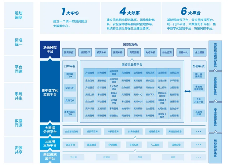 以“三重一大”决策和运行为着力点,围绕以管资本为主转变职能,充分运用信息化技术,整合包括产权、投资和财务等信息系统,搭建连通出资人代表机构与企业的网络平台,实现国资监管业务全覆盖和实时在线监管。