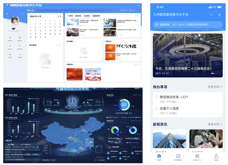 通过重点管控业务的动态化、协同化和智能化,打造集团管控“驾驶舱”,实现“一键调取”企业重要经营数据,“一屏总览”企业总体发展状况,高效预警事中、事后经营风险,助力企业行稳致远。