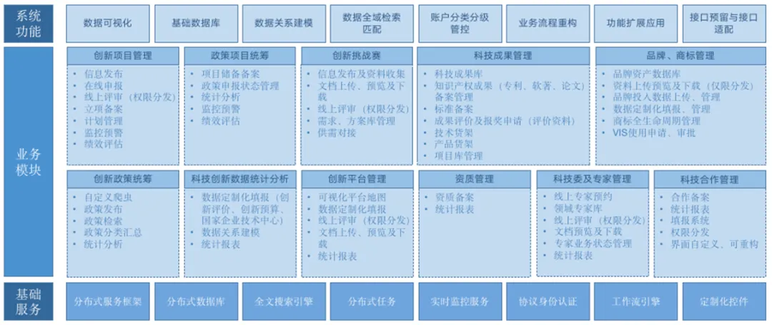 以建立共享机制为核心、以科技资源整合为主线,运用现代信息网络技术,有效集成包括人、财、物、技术等科技资源信息,实现对科技创新全链条的精准管控,有效支撑公司领导高效决策和精准施策,为企业高质量发展和科技创新提供资源共享服务的网络化和集约化。