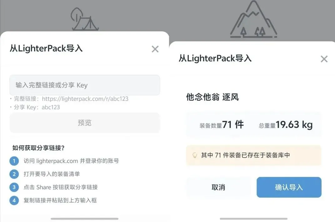 趁春节假期,我搞了一个户外App(限量内测) 点击蓝字 一起玩耍 不知道大家平时长线出行,都是怎么收拾装备的呢? 我之前每年在组织长线活动的时候,最初是用 Excel 做表格,将我的装备和公共物资都一项一项列出来,然后再按大家的装备情况、体力情况、物资的消耗计划,统一安排公共物资分配。 后来了解到了 LighterPack(https://lighterpack.com/),就开始转用 LighterPack 了。 LighterPack 挺好用的,但它也有个问题,就是只有网页版,在电脑上操作还行,但在路上用手机操作的时候,那就真要命了。 另外还是受限于网页版,进山了没信号,想再看一眼清单确认某个东西带没带(我都是按清单收拾东西的),要不进山前先截好图,要不就得把背包翻个底朝天。 我之前也寻找过类似 LighterPack 的手机 App,但没找到。在小红书上看大家推荐 LighterPack 的下方评论,也有不少人想找 App 版本的,但都无果。 我本身技术出身,所以老早之前就想做个类似的装备管理的 App。但我主要是搞服务端的,对 UI 设计和 App 端侧开发都是一个门外汉,所以就一直拖着没搞。 这次赶上春节我有一个较长的假期,借助 AI,我就决定还是把这个想法给实现了! 这个 app 刚捏出来,目前还在完善过程中,也欢迎大家提建议,功能许愿,说不定就实现了呢~ 当前已经做了的功能: 1、装备库 与 行程背包 装备库:可以理解为你的所有户外装备都放在这。 背包:等到具体的行程时,新建一个“背包”,可以直接从装备库里挑东西放入背包。要是临时带个吃的、加个气罐,也能随时在背包里单独新增。 2、背包重量透视 LighterPack 其实我挺喜欢看上方的那个统计图,能清晰的知道自己背包里各个系统的重量分布,有针对性的对相关系统做优化。 但 LighterPack 只显示“全身负重”,这个其实我是觉得有些不太合理(下文有详细解释)。 所以在参考 LighterPack 的同时,我将一个背包的装备重量分为了三级,大家可以根据自己的情况自由选择: 1️⃣ 基础重量(Base Weight):这个重量就是背包里物品刨去了水、食物、燃料等消耗品的重量。 一般UL玩家交流比较多是这个重量,这就是纯粹的装备重量(一般主看UL四大核心系统:背包系统、睡眠系统、庇护系统、烹饪系统)。 2️⃣ 背负重量(Pack Weight):这是 app 默认显示的背包重量。在基础重量的基础上,加上了水、食物、燃料等消耗品的重量。 这是当你走在路上时,实打实压在你肩膀上、腰上的真实重量,也是行进时背包的总重,是最直观的(大家走路上碰见了,拎一拎彼此的包,也就是这个重量了)。 也是判断你的背包背负系统是否在舒适区间的重量。 3️⃣ 全身负重(Full Weight):更专业些的叫法是叫Skin-Out Weight(皮外重量?)。在背负重量的基础上,加上了穿在身上的衣物重量、穿在脚上的登山鞋重量、拿在手里的登山杖重量 等。 LighterPack 上方的那个饼图,其实显示的就是这个重量的各系统分布(它称之为 Total Weight)。 我为什么不效仿 LighterPack 将这个作为默认重量呢?主要是这个重量,我觉得有些尴尬,既无法评估背包系统的舒适度,也没法指导 UL。另外,重量所在的位置是会决定能耗的(同样一双登山鞋,穿着和背着所消耗的能量是不一样的)。 留下它的原因,可能就是能指导我们行李托运。或者避免你穿个超能装的背心,用 BW 来跟其他人比谁更 UL? 3、离线优先 App,没网也能用 进了山没信号,照样能打开看清单、做修改,出山信号恢复了,会自动同步。 曾经我使用 LighterPack 最痛的两个点:移动端不友好、离线不可用,都给搞定了! 以后钻睡袋里睡不着的时候,就可以研究研究怎么升级装备了。 4、支持 LighterPack 数据导入 重复再录一遍装备?那是不存在的! 如果你之前已经在用 LighterPack,支持直接导入进来。 (另类玩法,先用 LighterPack 在电脑上快速录入,然后导入,好像 Web 端我都不需要做了) 5、背包分享图 “我的超轻” vs “我超能背”,怎么能不分享出去让大家都知道呢~ 还可以留个记录,看看都是哪些系统的装备该升级了 以上这些就是目前 App 已经实现的,但毕竟就一个假期的时间,时间有限,功能还待打磨。 在后续的迭代上,我已经有一些想法了(好多呢),后续计划逐步实现。万事开头难嘛~ 现在想找一些感兴趣的朋友来内测体验一下,多提提意见: 1、手机得是 Android 的,因为目前就先只做了 Android 版本。 2、不管用没用过 LighterPack,都欢迎。 3、如果大家在使用中遇到一些 bug,或者有特别想要的功能,希望能配合着截图、甚至录个屏跟我吐槽。 怎么参与内测体验呢? 大家可以在公众号后台(不是文章底部的留言区)回复暗号:【内测】。 后台会自动把 app 的下载链接发给你,同时也会邀大家进内测交流群。 每批内测数量有限,先到先得~ – END – 对未知的探索对世界的渴望