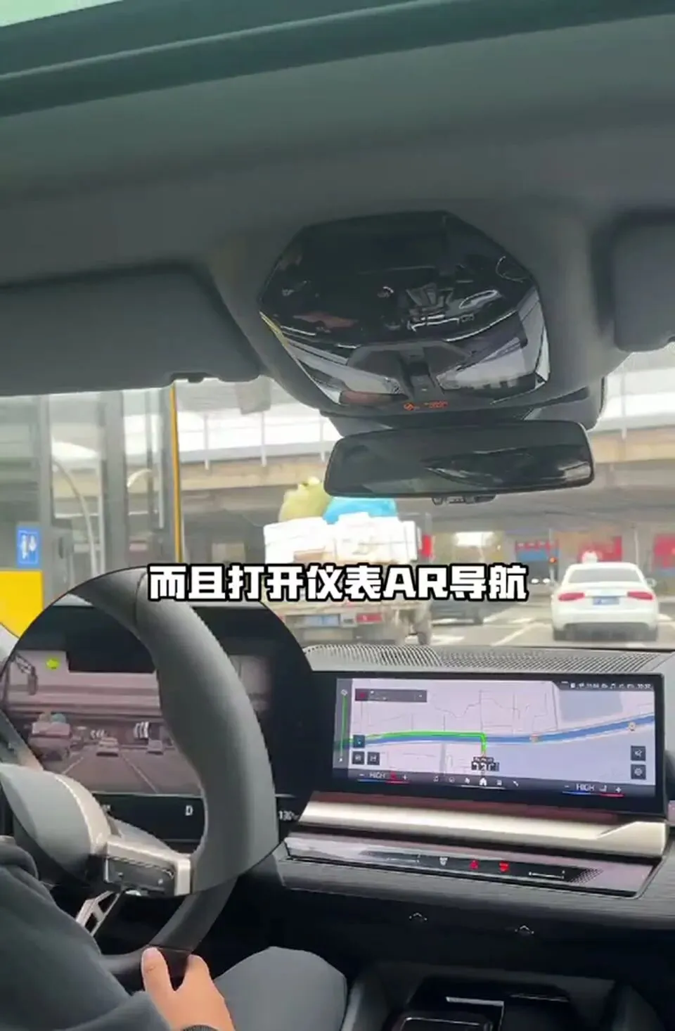 而且打开仪表AR导航,就可以看见转弯的箭头,那个箭头是叠加在实景画面上的,该左转的时候,箭头就指向左边车道,特别直观。