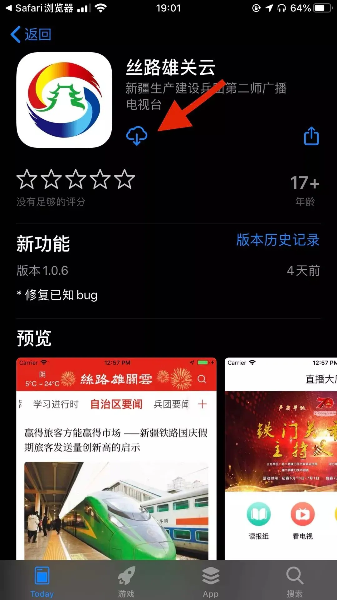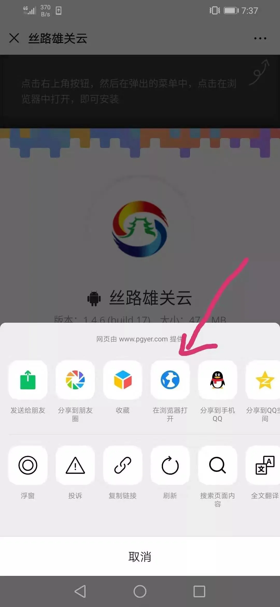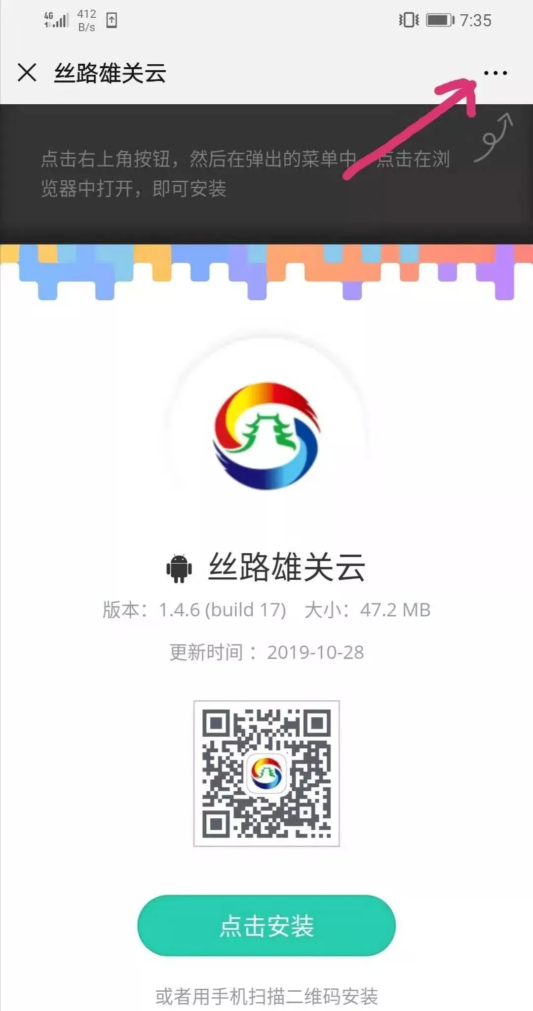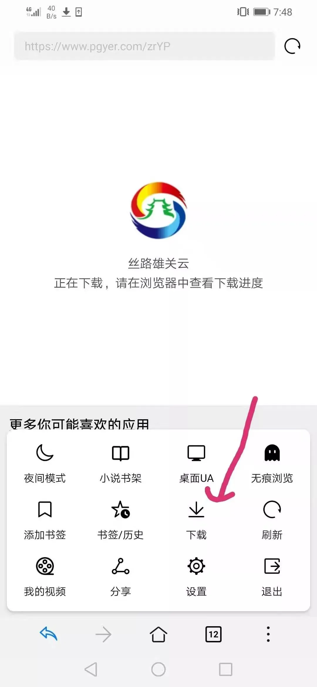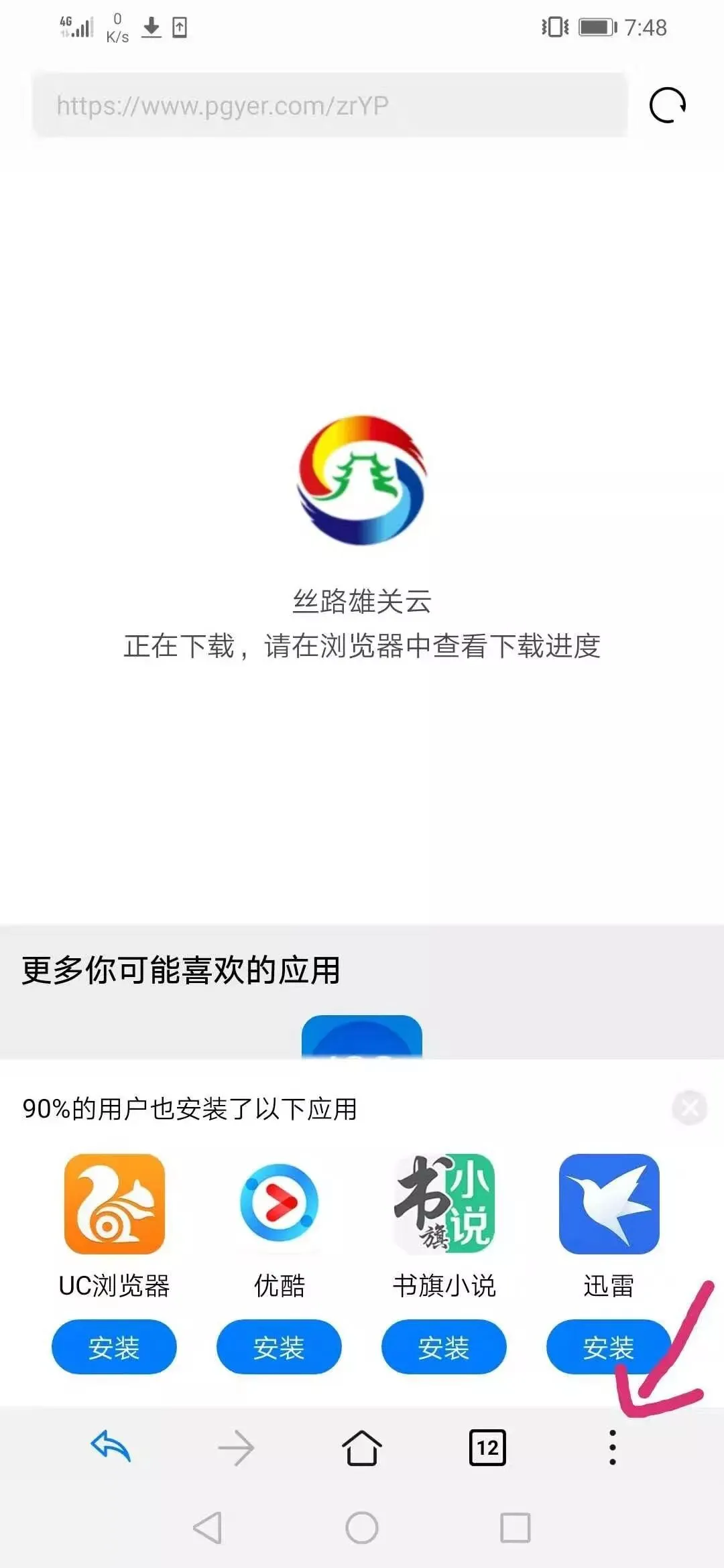 8.如图第一个下载内容即为丝路雄关云APP的下载,等待下载完成可点击“打开”按钮进行安装