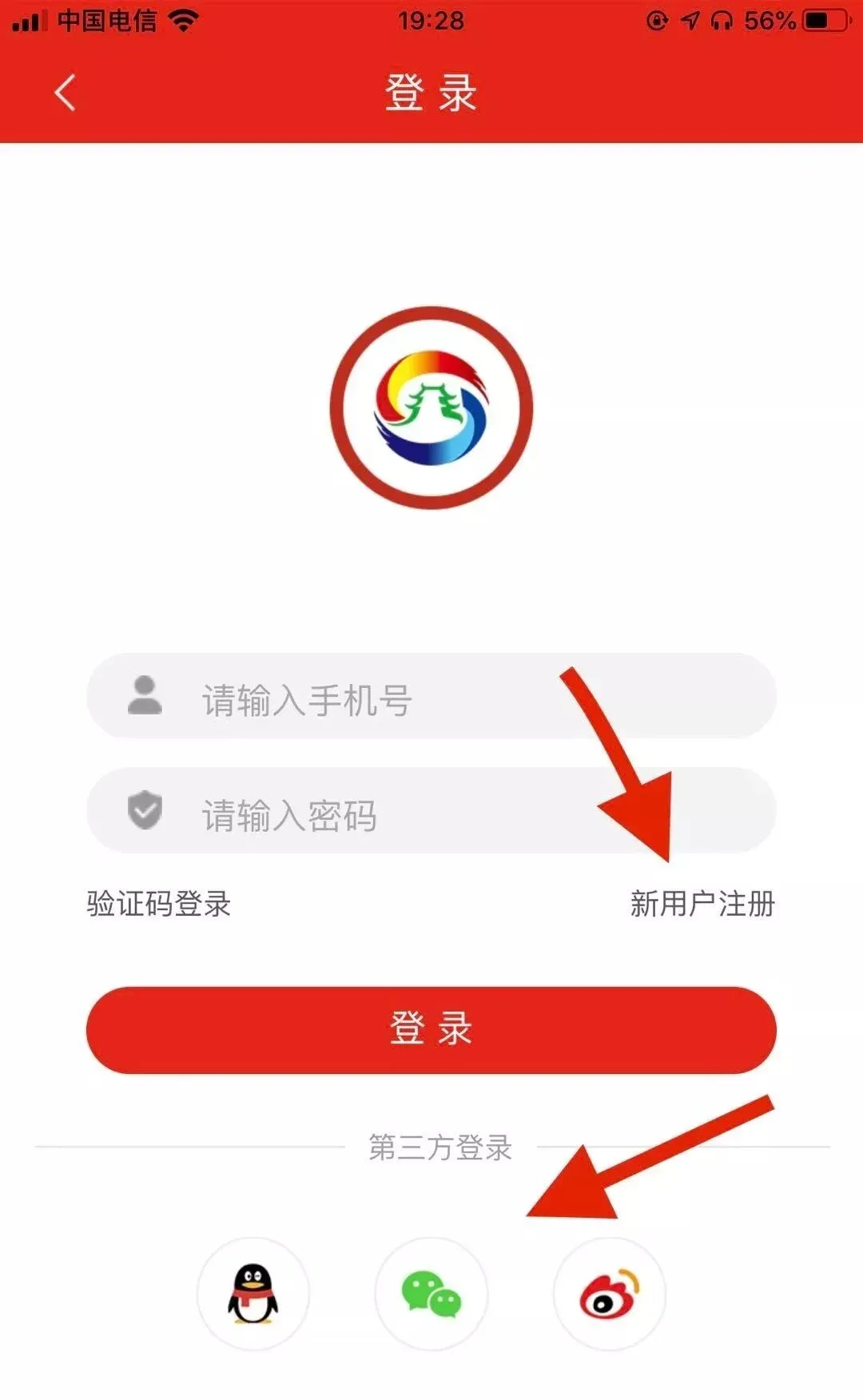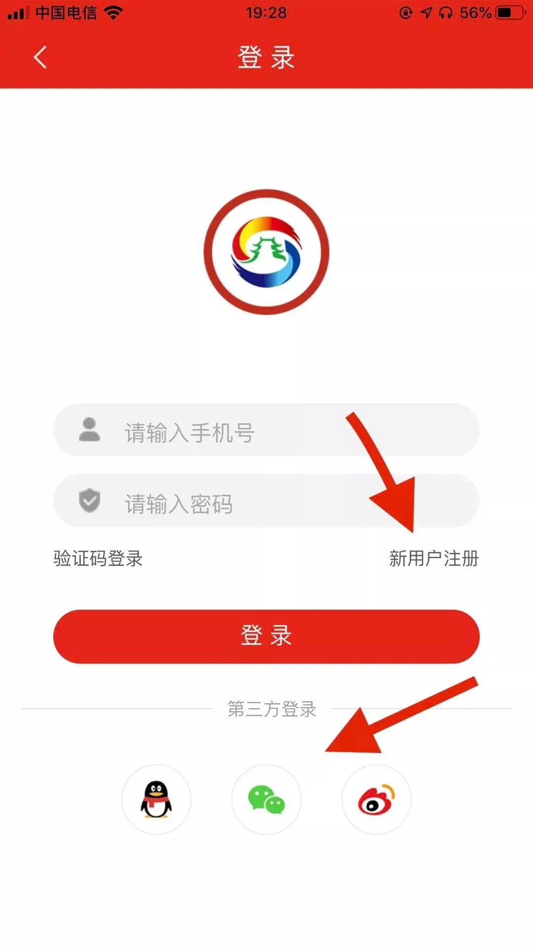 14.可以选择“新用户注册”或者第三方登录实现用户登录