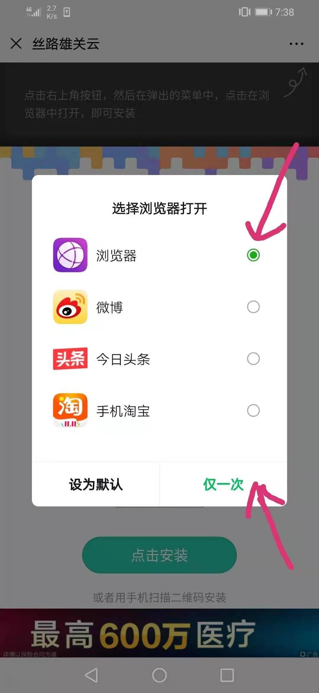 5.选择“浏览器”,然后点击“仅一次”按钮