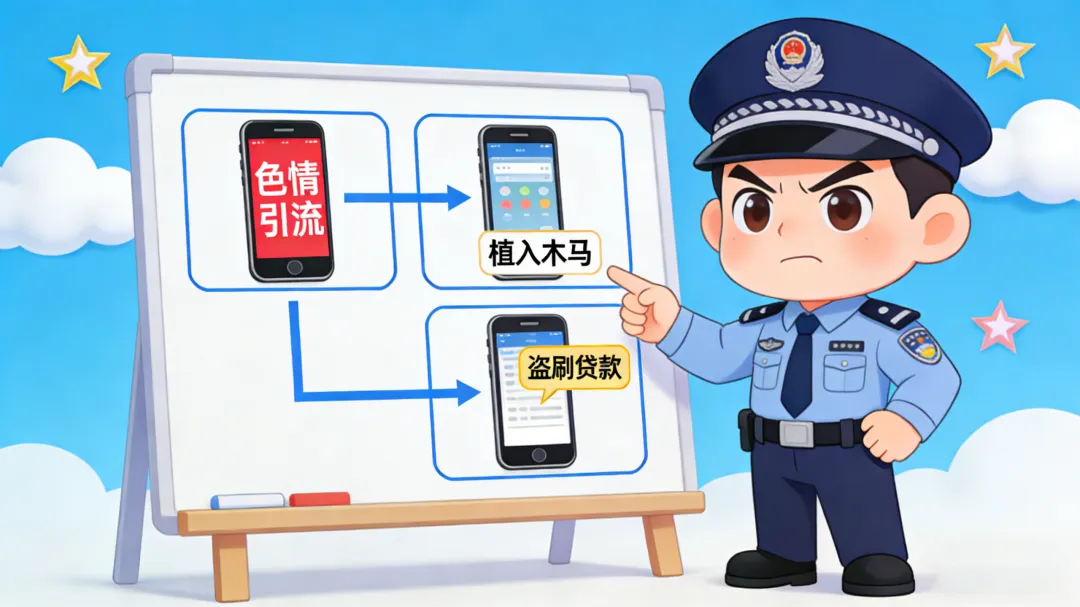 办案民警介绍,这是一起典型的“色情诱导+木马盗刷”电信诈骗,诈骗分子精准抓住部分群众的猎奇、贪念心理,一步步设套: