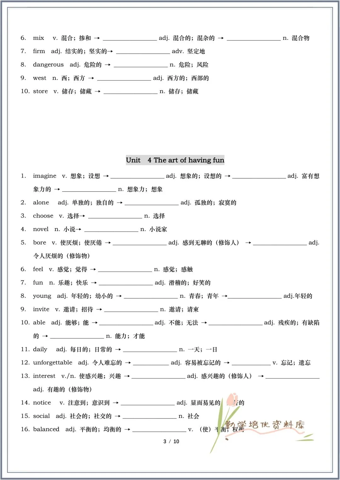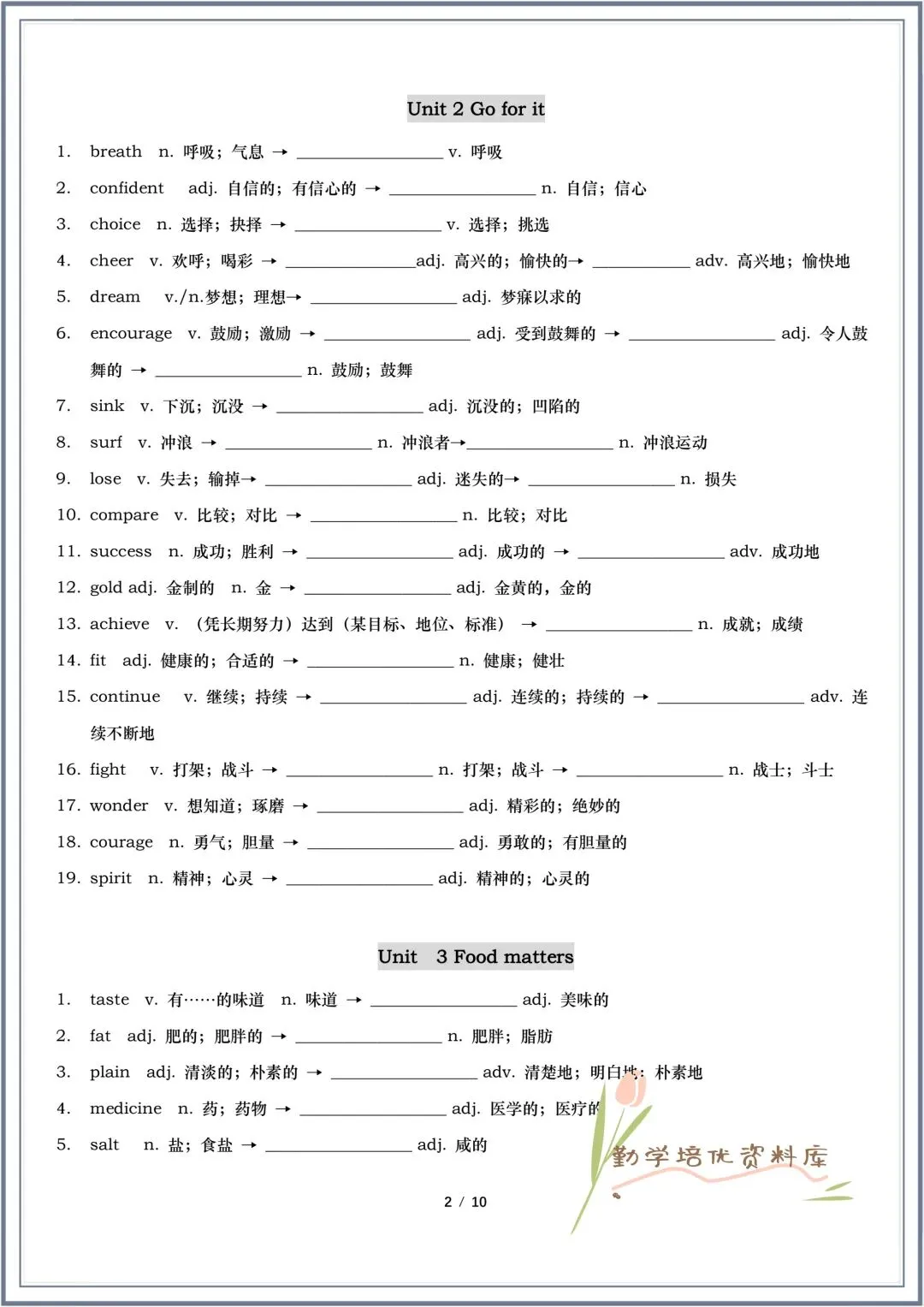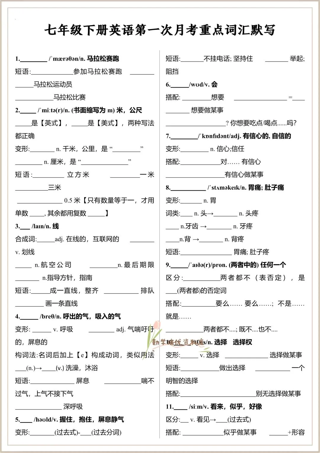 今日老师精心给大家整理了:2026春(外研版)七年级下册英语Unit1-Unit6词性转换(最新改动)+第一次月考重点词汇默写,有高清电子版可打印!
