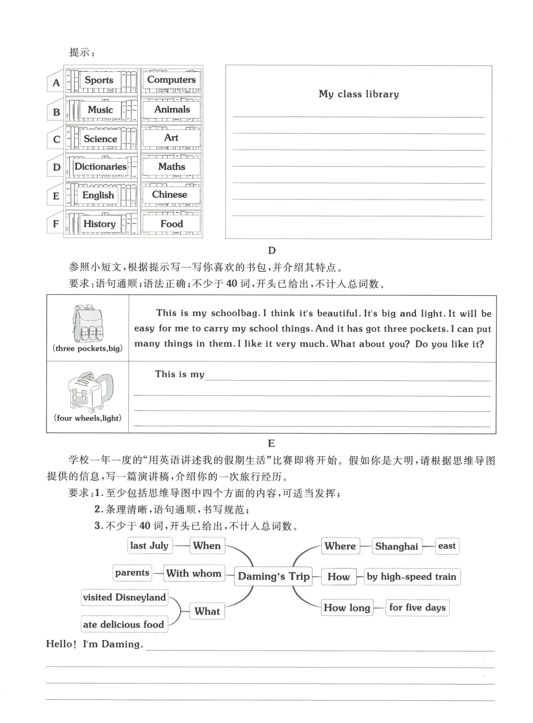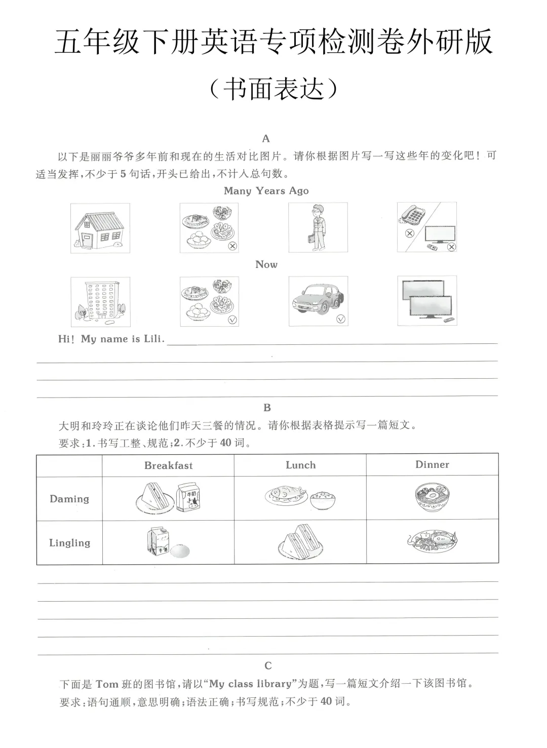 五年级(下)英语书面表达专项练习《外研版》文末附电子版