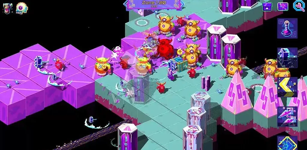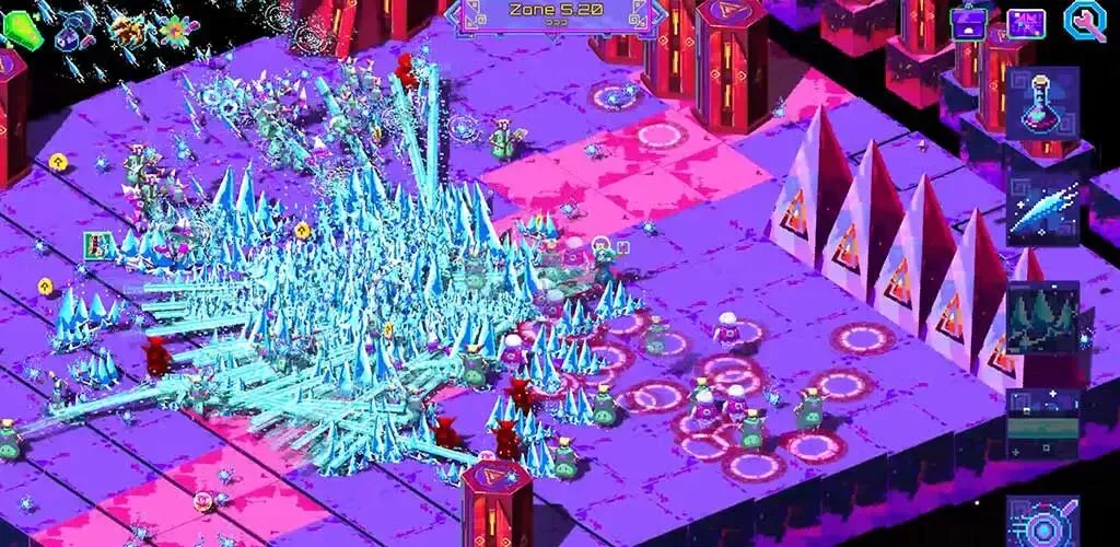 视听表现方面,本作将复古像素艺术与现代3D物理效果相结合,营造出惊艳的视觉氛围。法术释放时产生的碎片飞溅与鲜艳的几何地貌交相辉映,极简赛博风格的美学设计配合动感十足的电子音乐,你准备好拥抱霓虹,释放前所未有的魔法了吗?