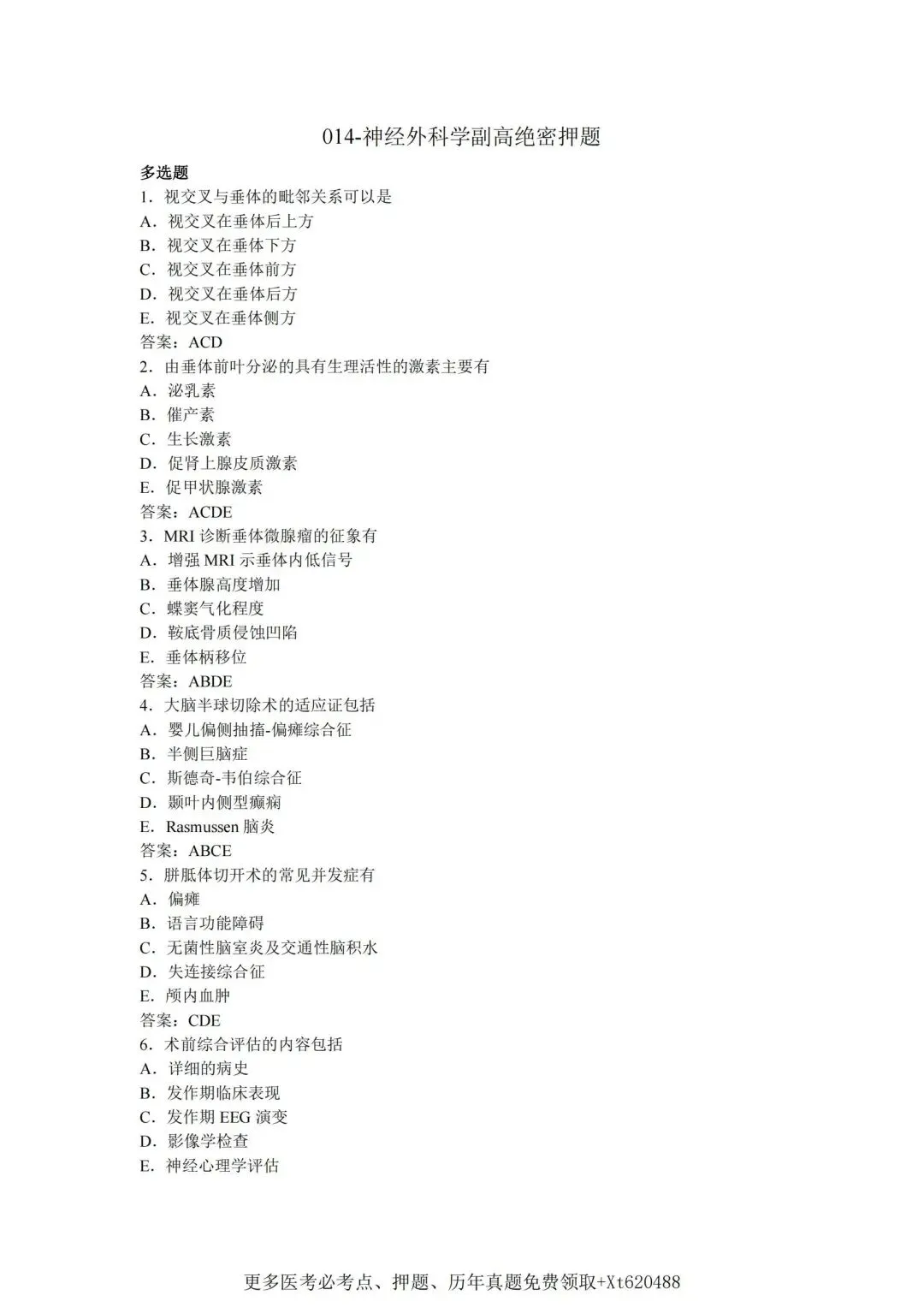 以上是神经外科学高级职称014备考资料包部分精华内容节选完整版领取如下: