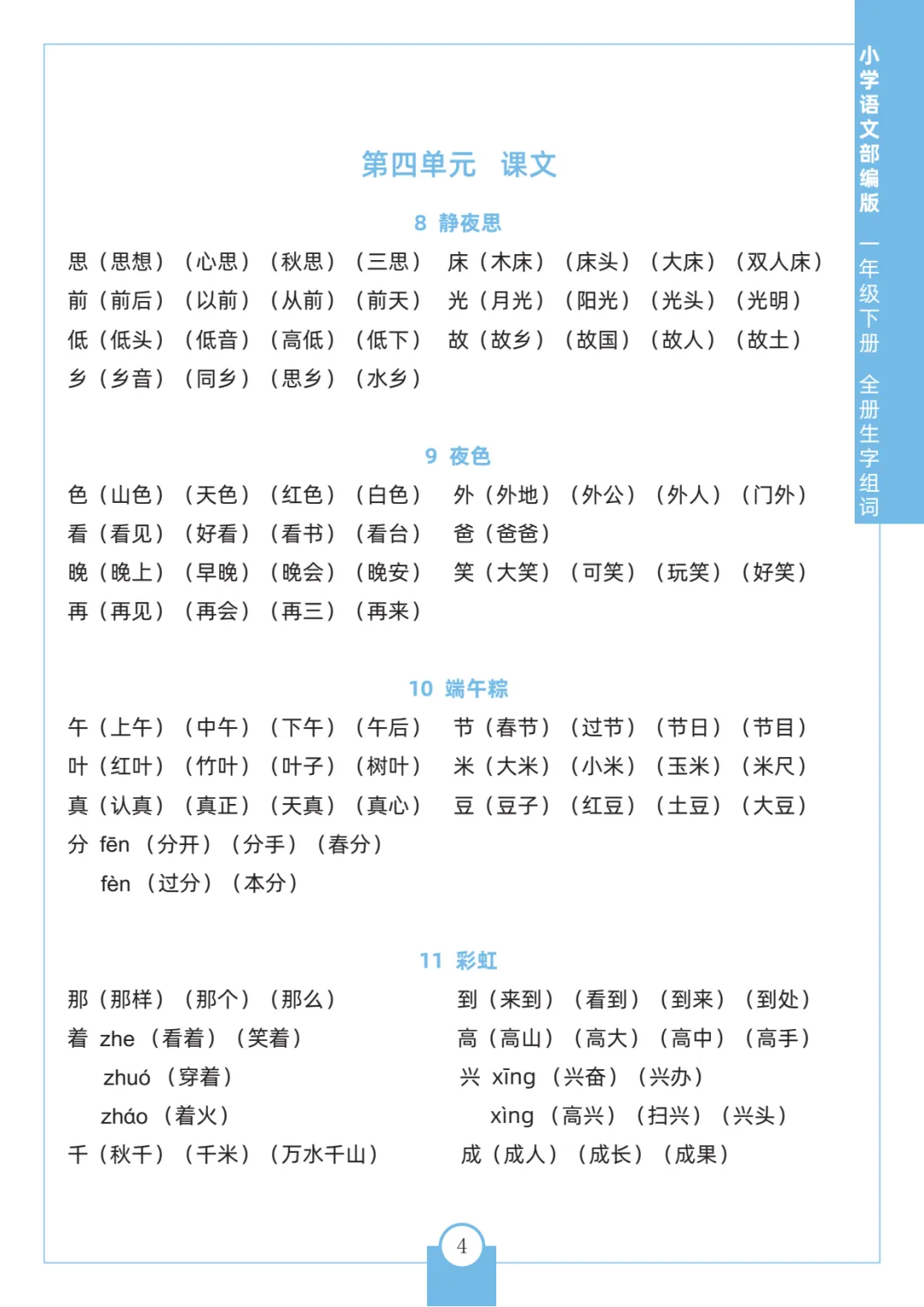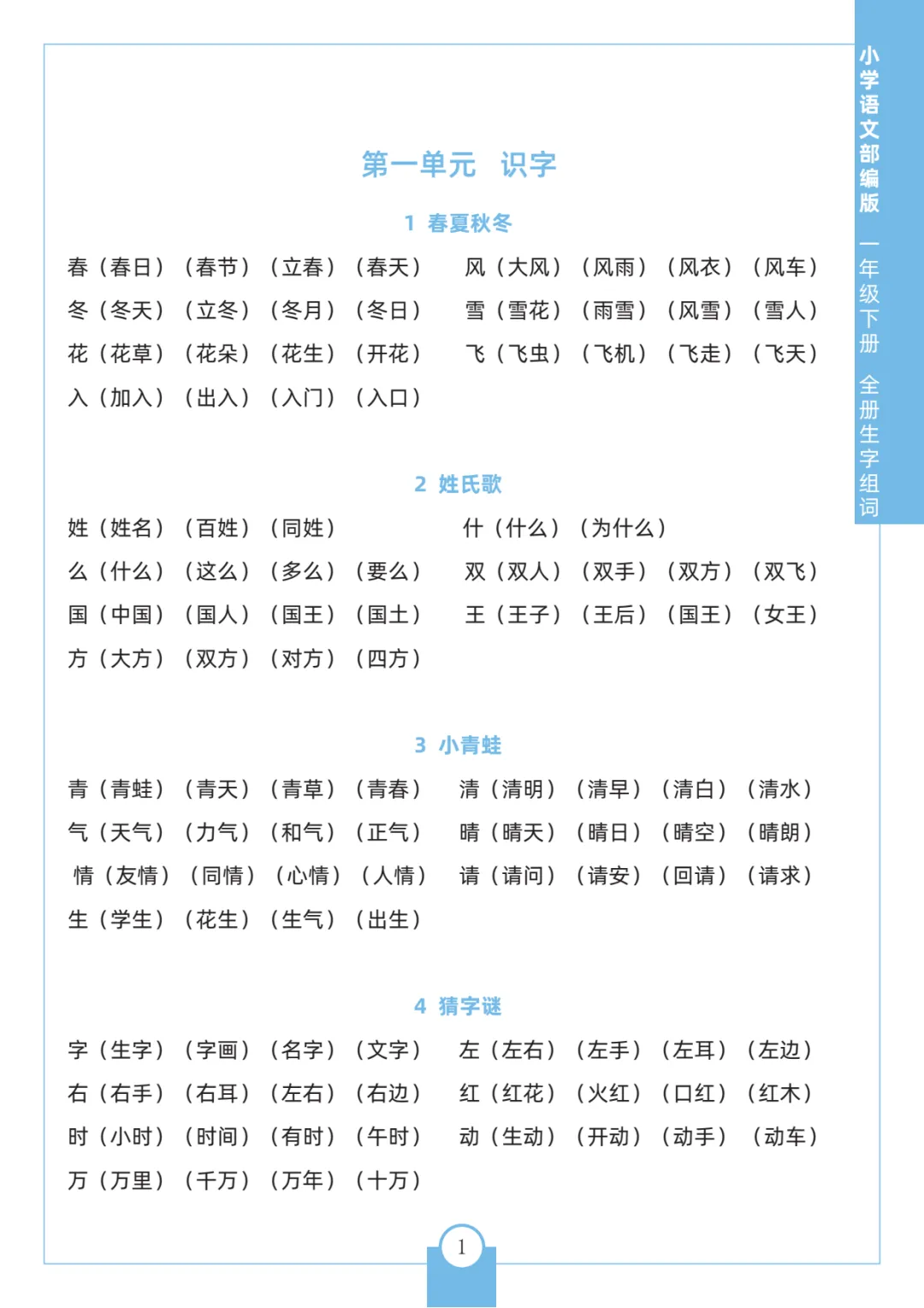 统编版语文1-6年级下册《每课生字组词》可下载打印