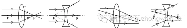 35.平行光通过透镜的光路图: 通过透镜的三种特殊光线: