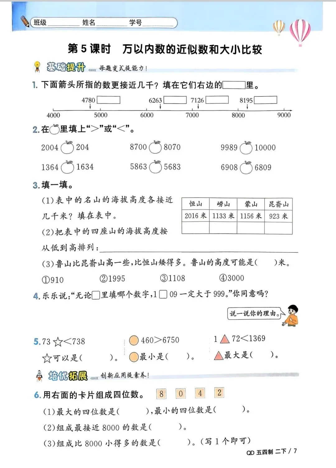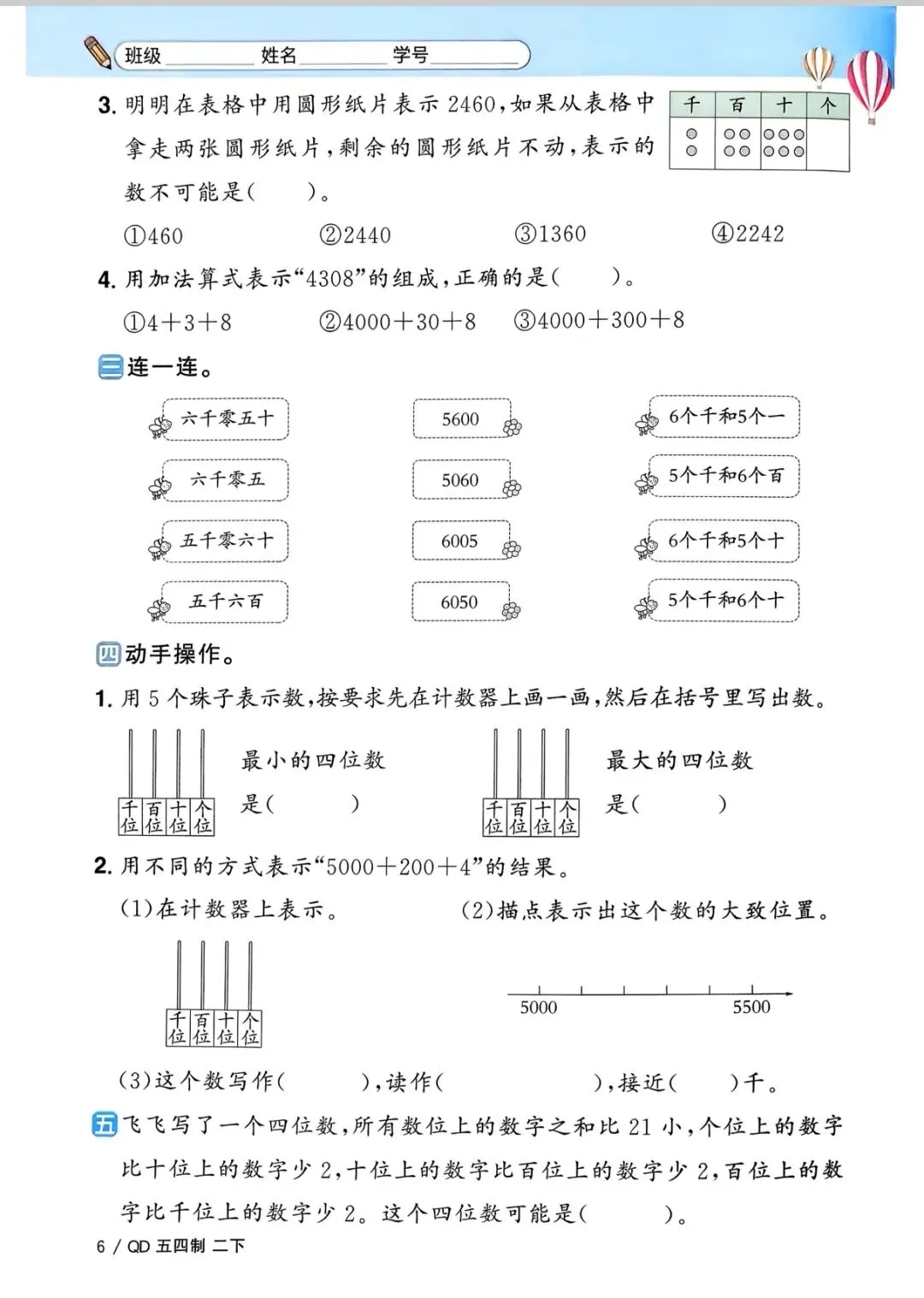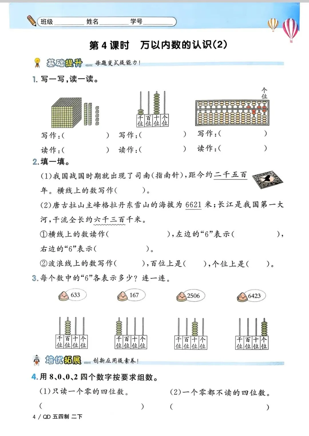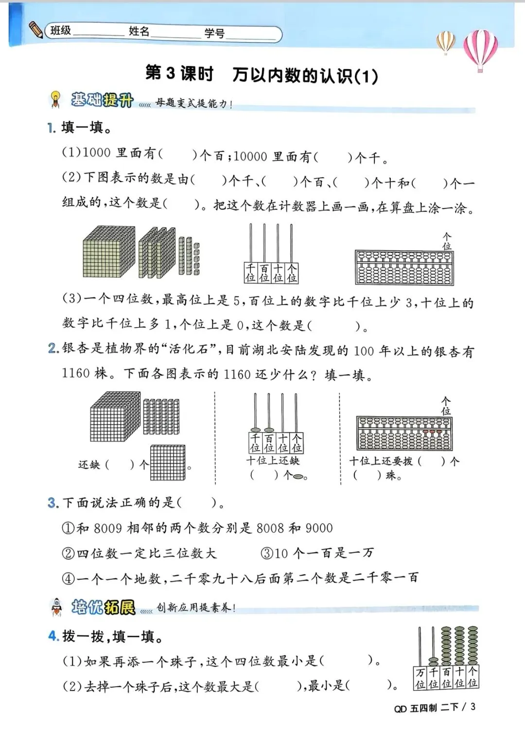 二年级下册数学(电子版可打印附答案)