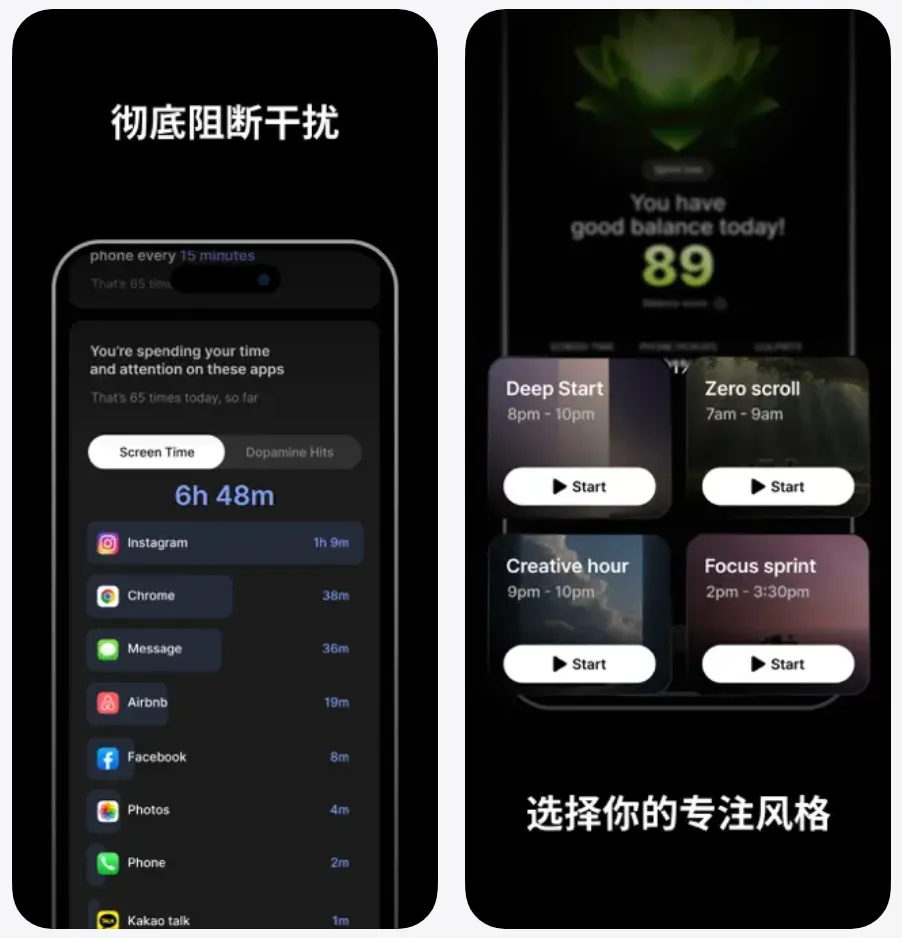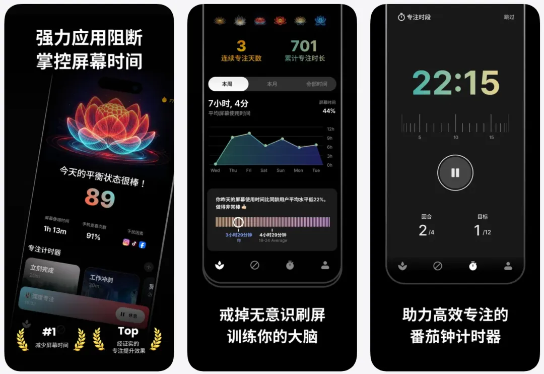 它通过 “每日平衡分数” 量化数字生活质量,用 “专属荷花池” 视觉化记录宁静时刻,让专注变成一种美的练习。