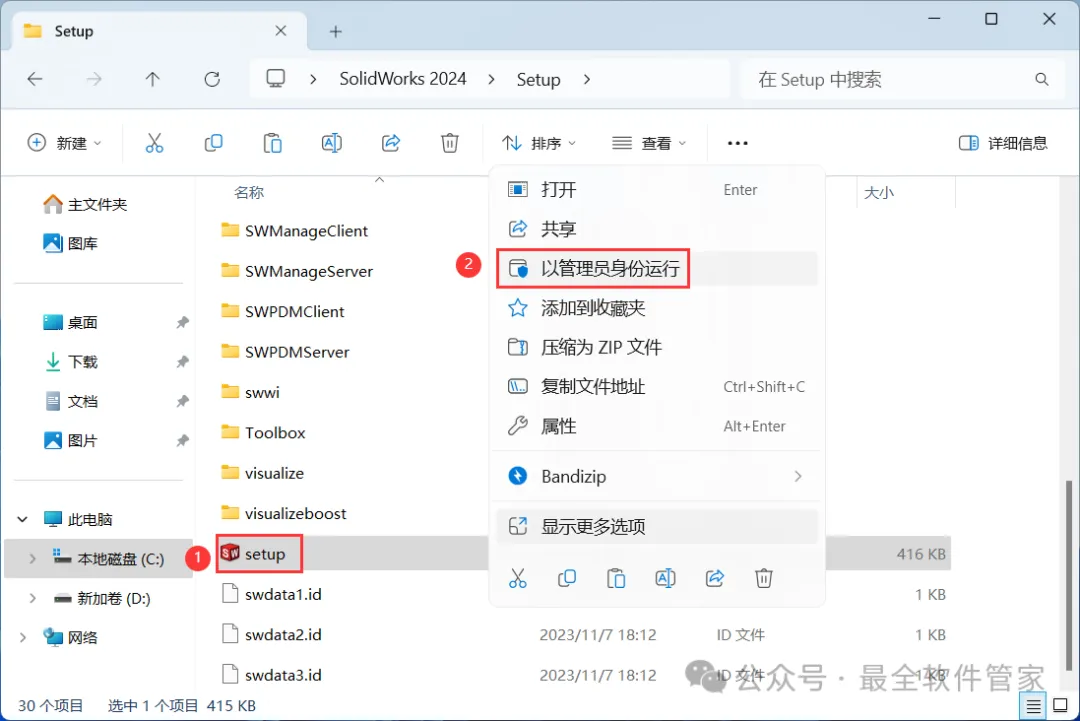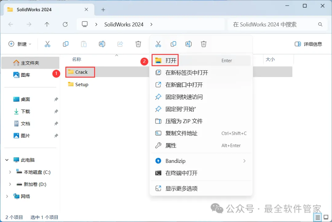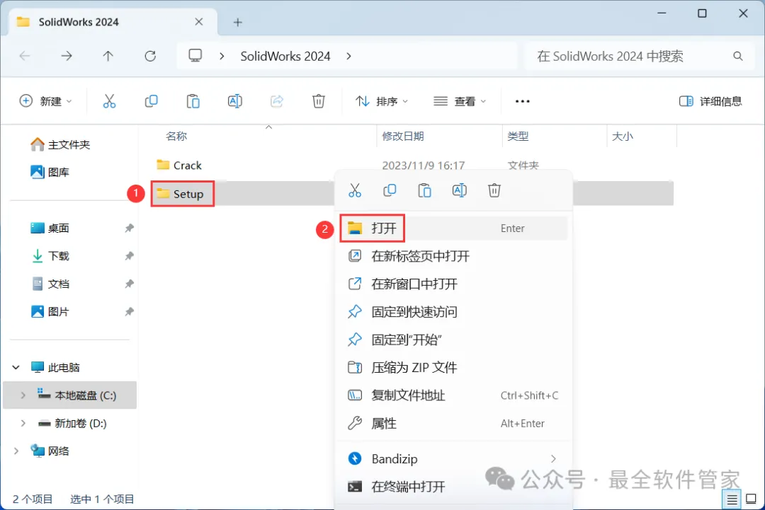 13、回到SolidWorks 2024文件夹,找到【Setup】文件夹,右键【打开】它
