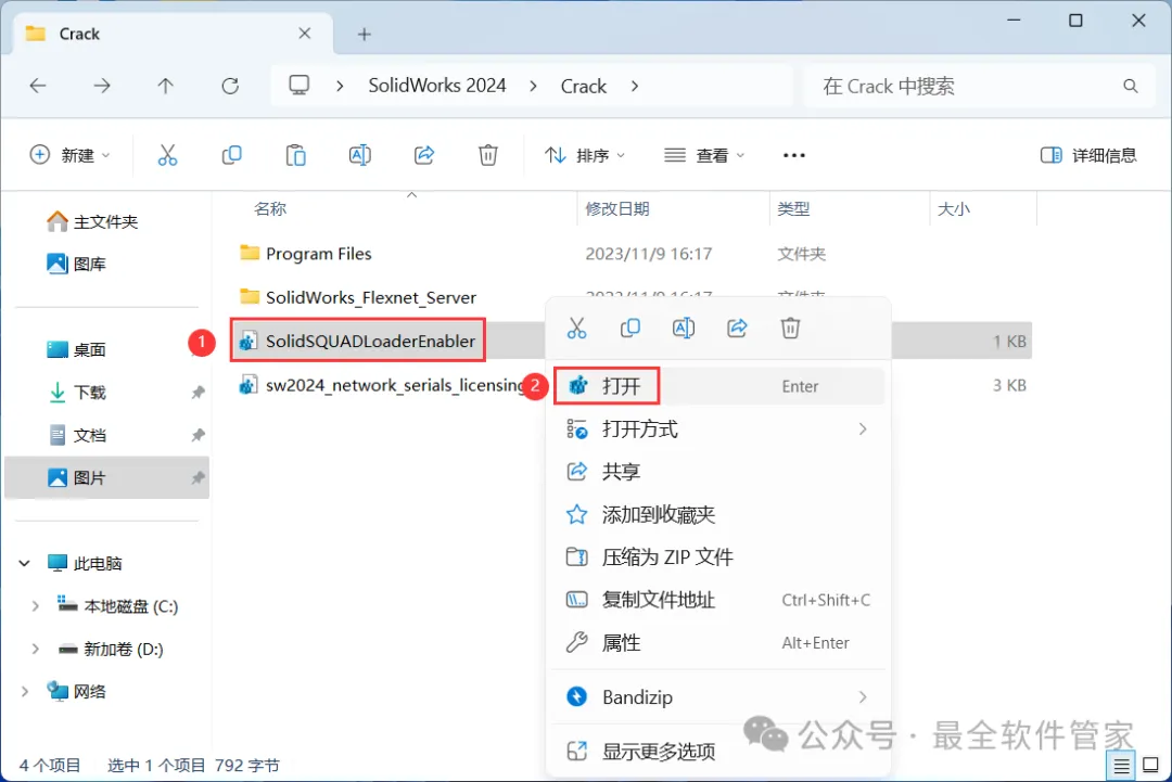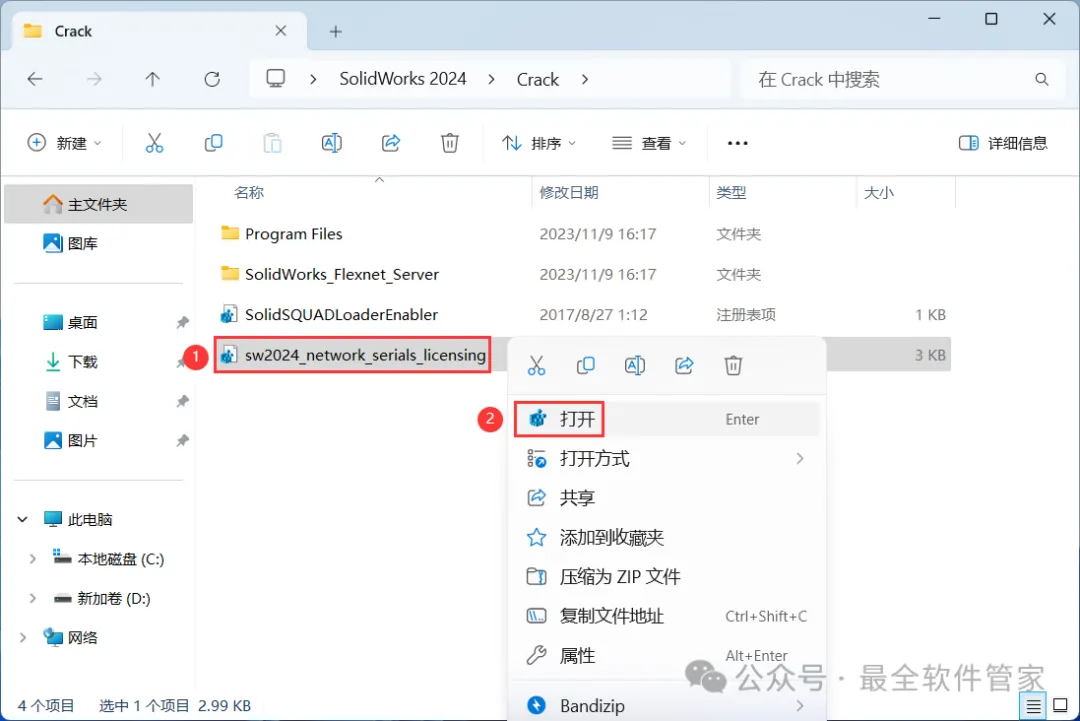 4、找到【sw2024_network…】文件,右键【打开】它