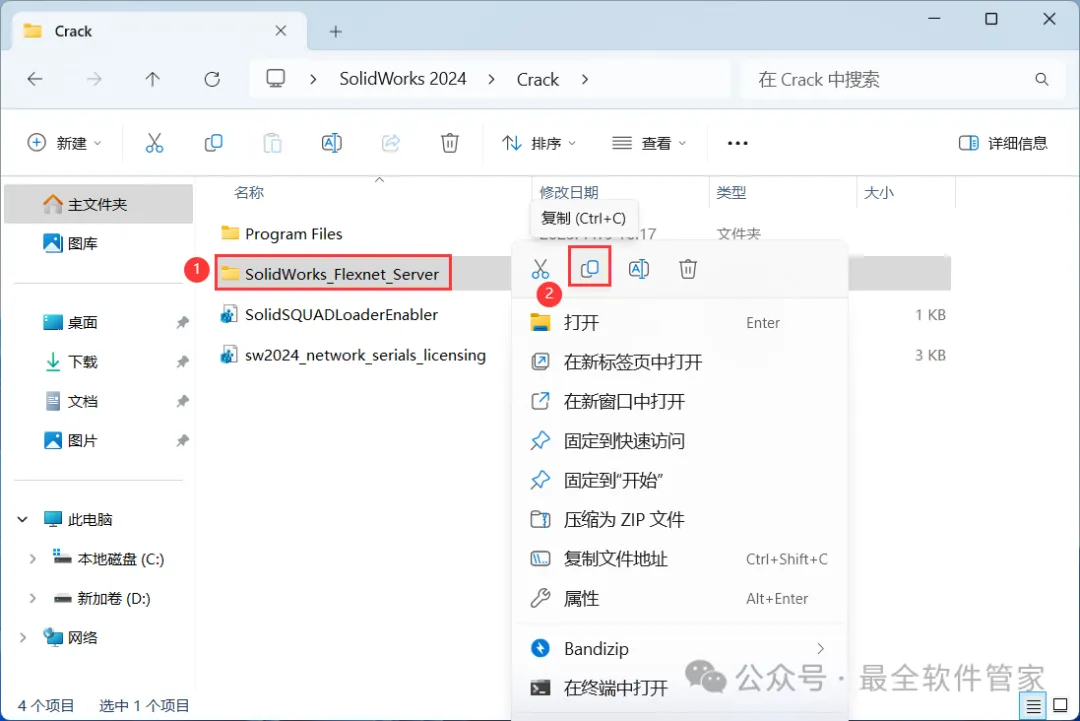 7、找到【SolidWorks_Flexnet_Server】文件夹,右键点击【复制按钮】