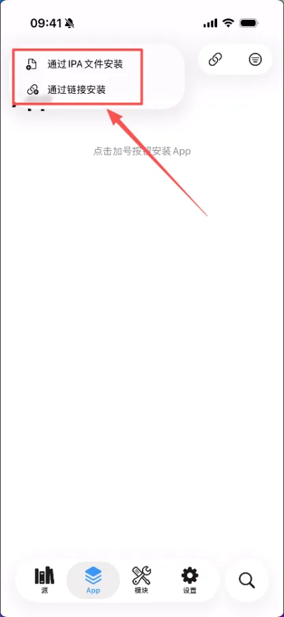 1. 打开 LiveContainer,选择「通过 IPA 文件安装」或「通过链接安装」;