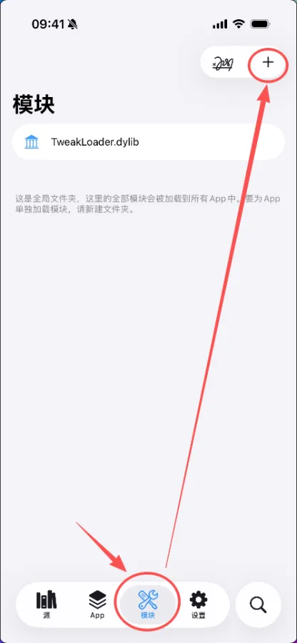 1. 打开 LiveContainer,进入「模块」界面,默认模块不要动;