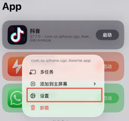 4. 回到 App 界面,长按目标 App,点击「设置」;