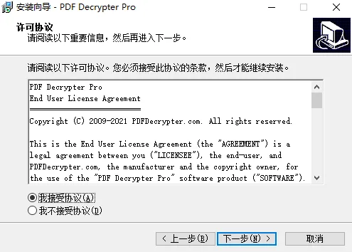 2、双击【pdfdecrypter.exe】,安装软件;