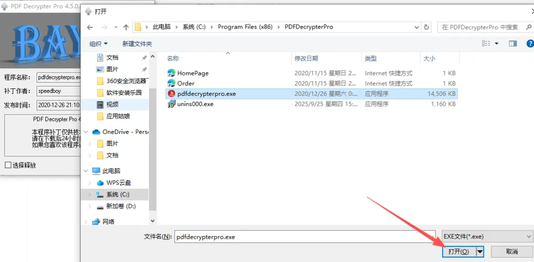 5、双击【pdfdecrypterpro 和谐补丁.exe】,