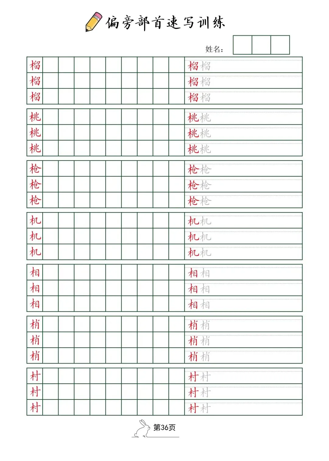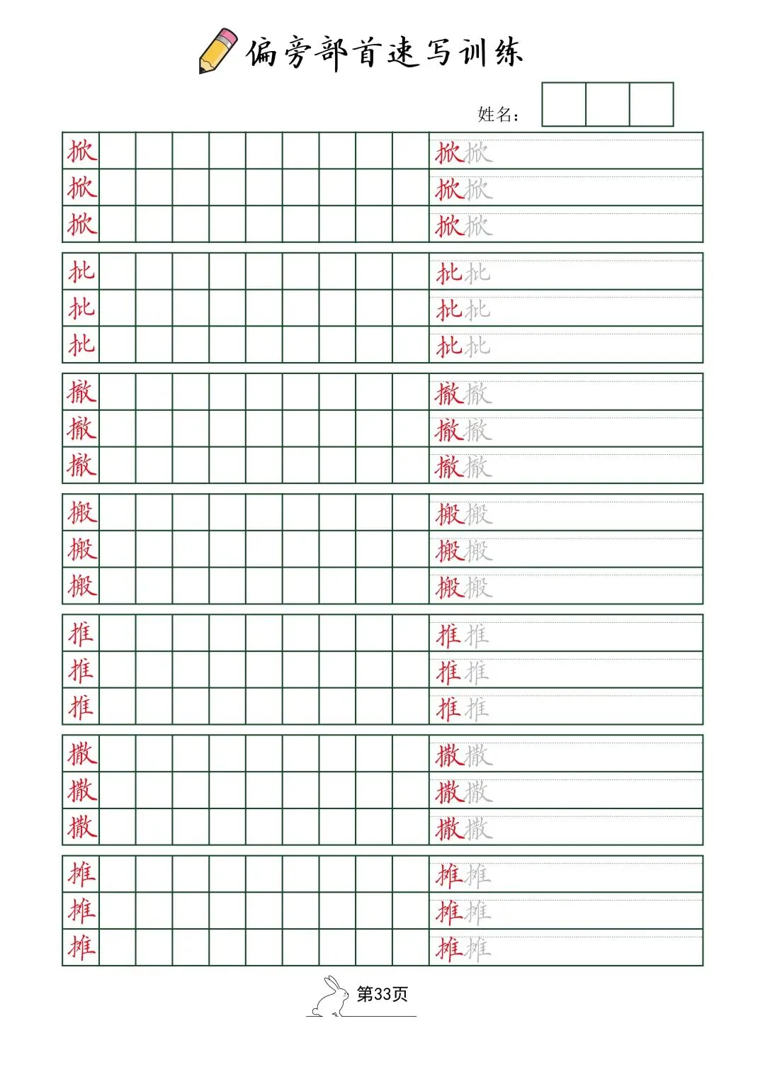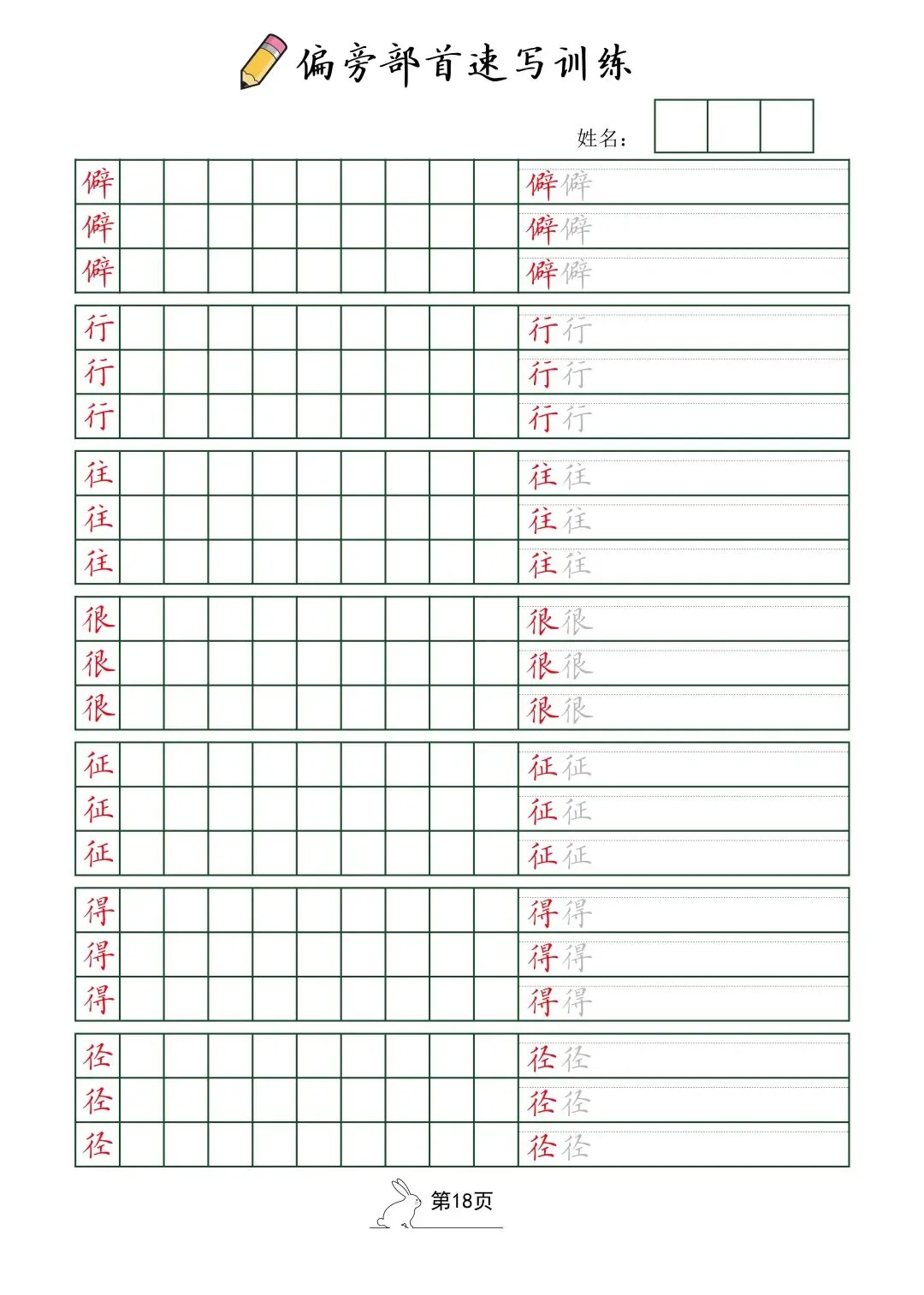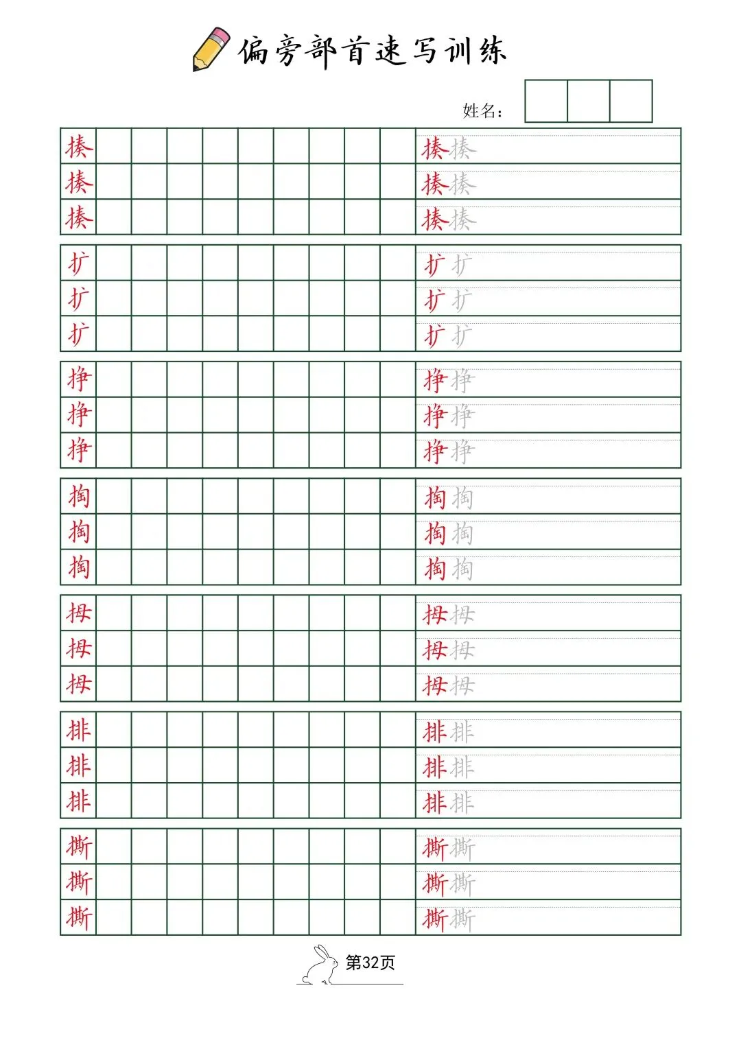 偏旁部首速写训练(电子版52页)