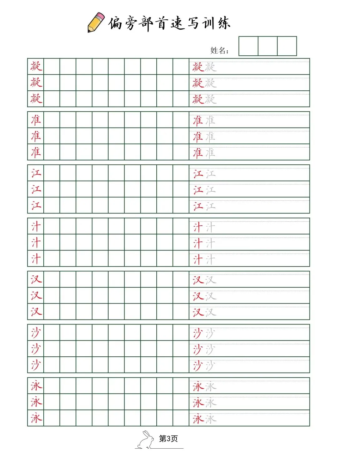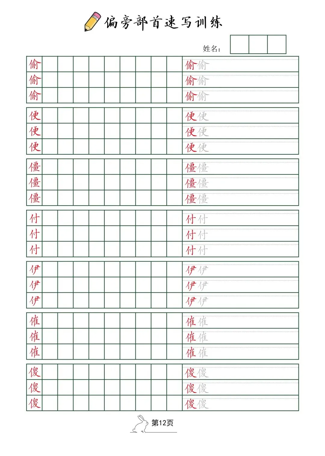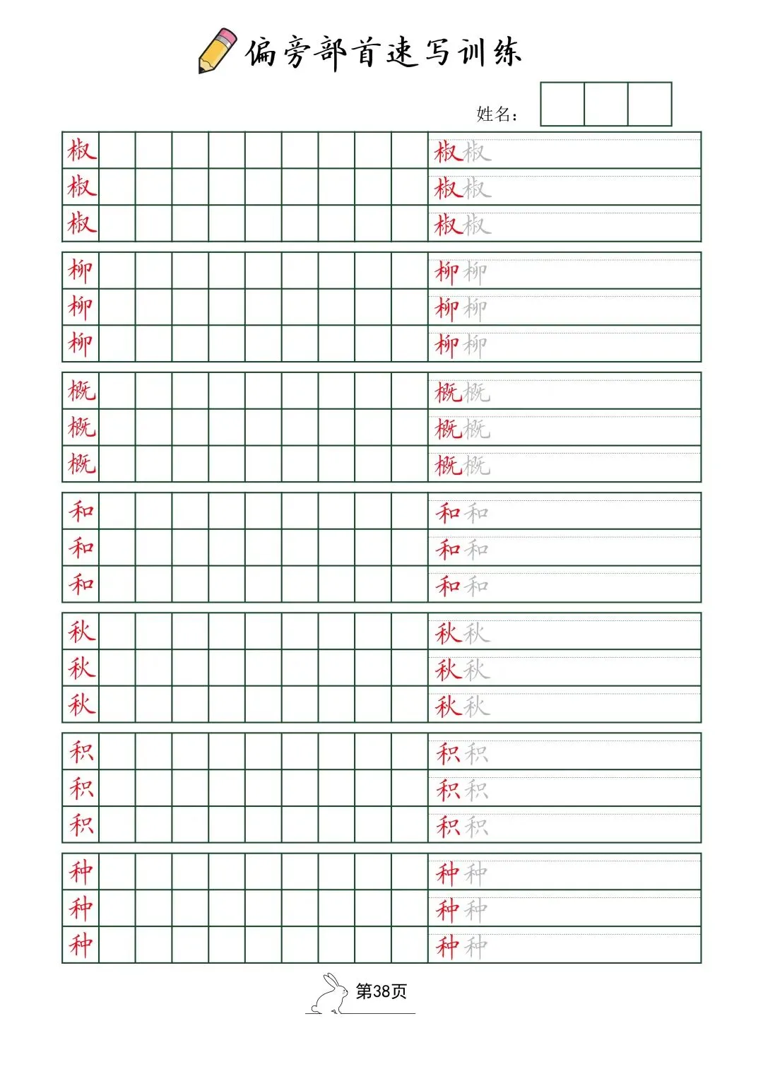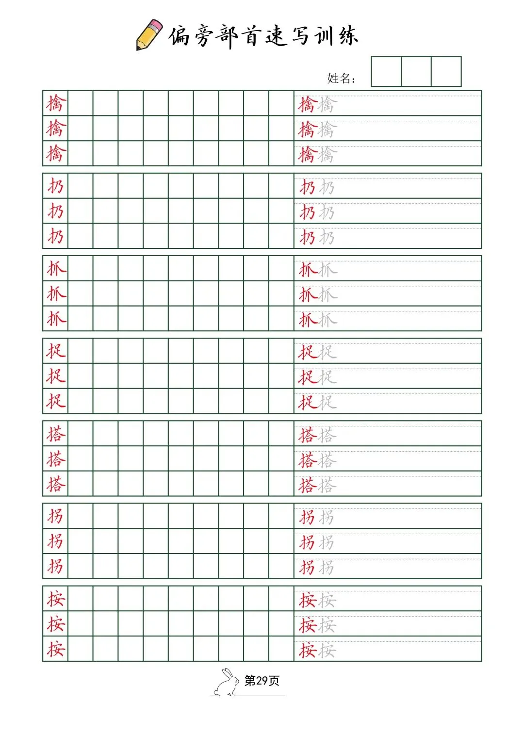 偏旁部首速写训练(电子版52页)