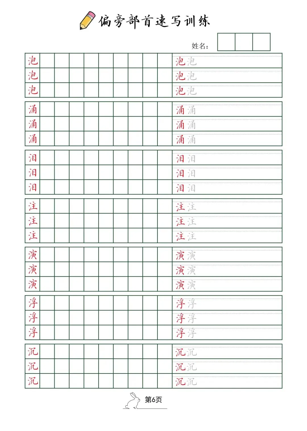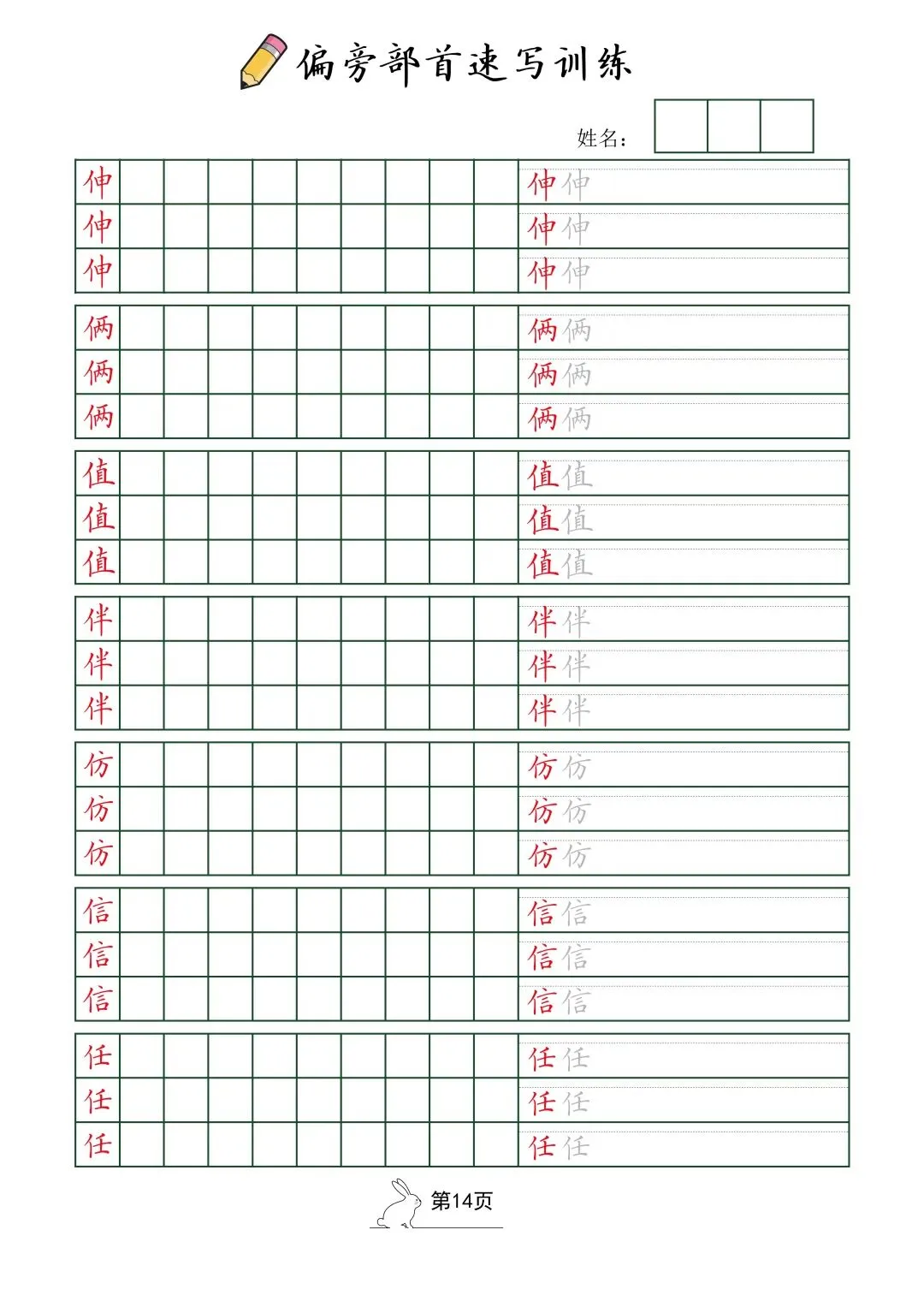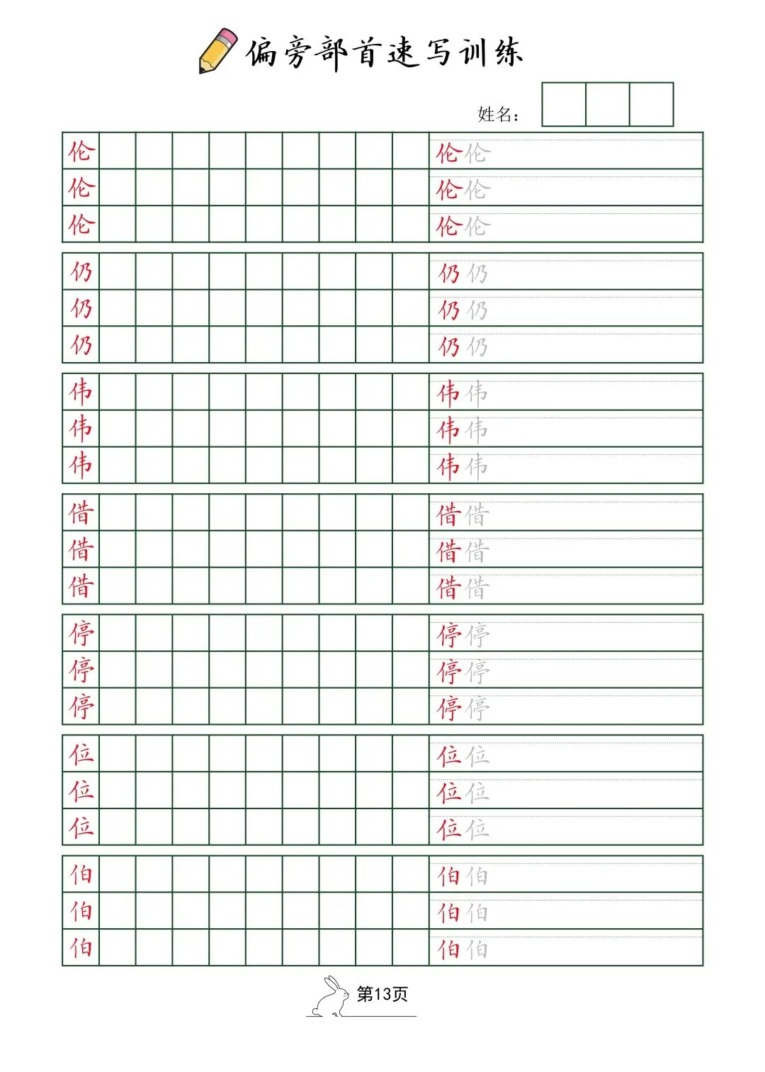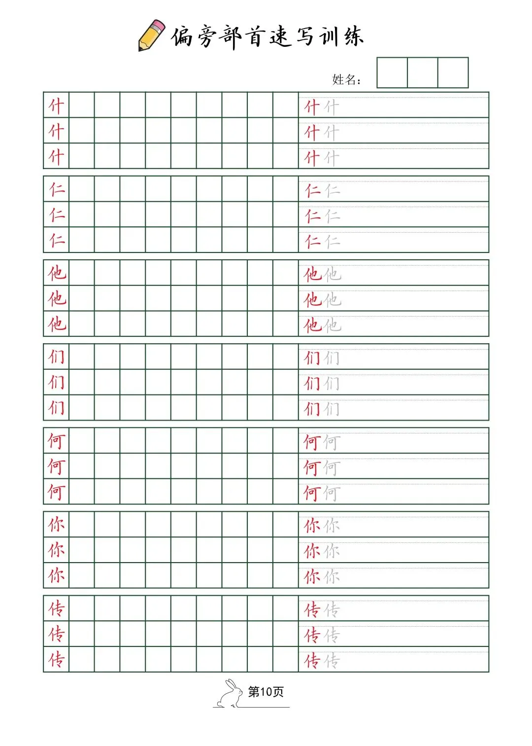 偏旁部首速写训练(电子版52页)