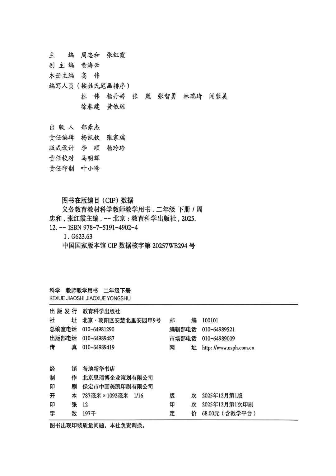 2026春新教材科学二年级下册教师用书电子版