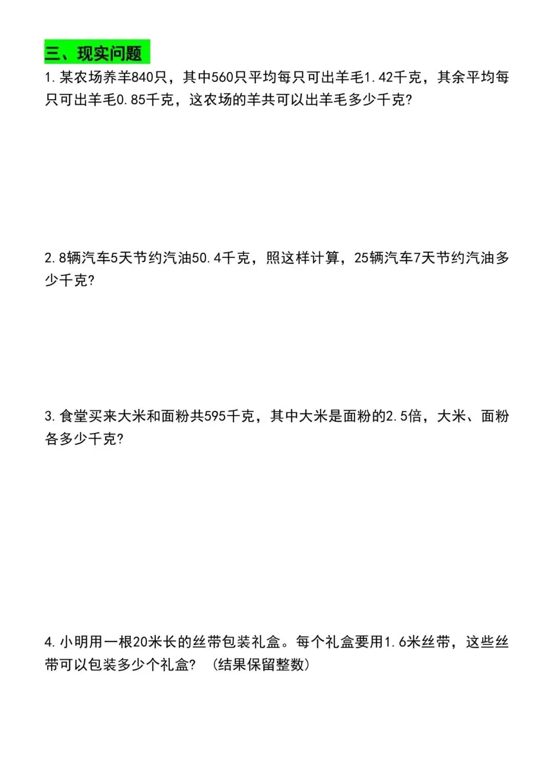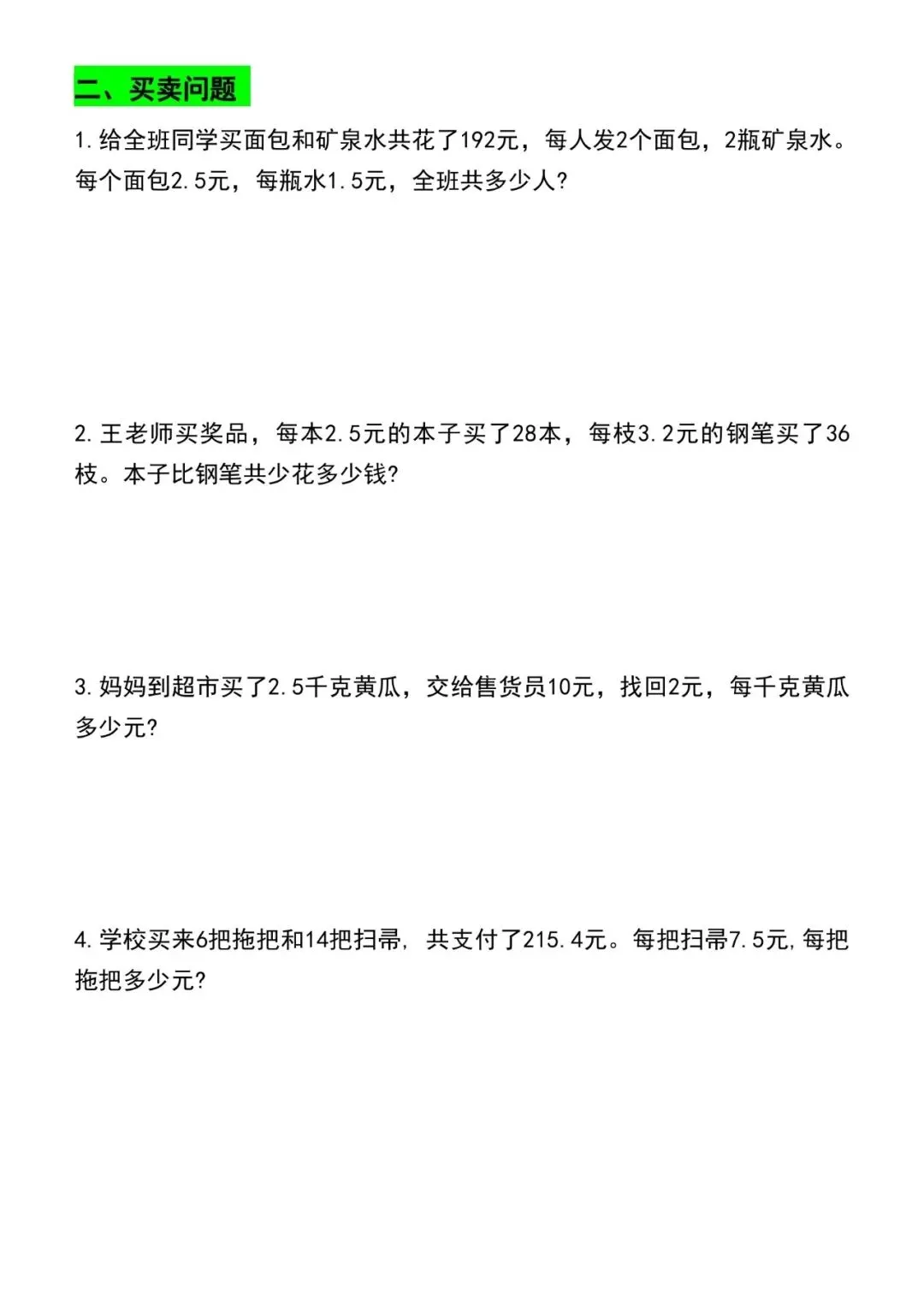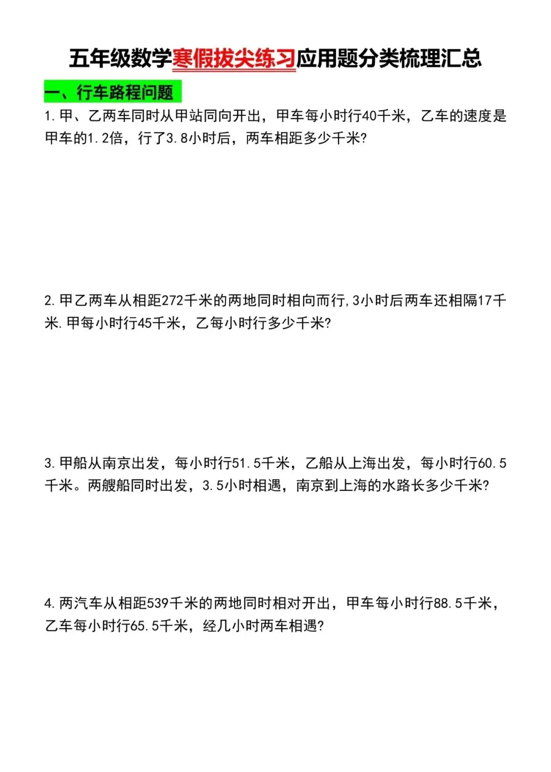 五年级数学寒假拔尖练习应用题分类梳理(电子版可打印)