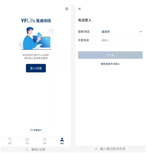 (2)输入自己投保时留的手机号码(投保万通保单时登记的手机号码,必须与客户在保险公司登记的号码一致)。填写手机收到的验证码,然后登录后即可注册成功了。