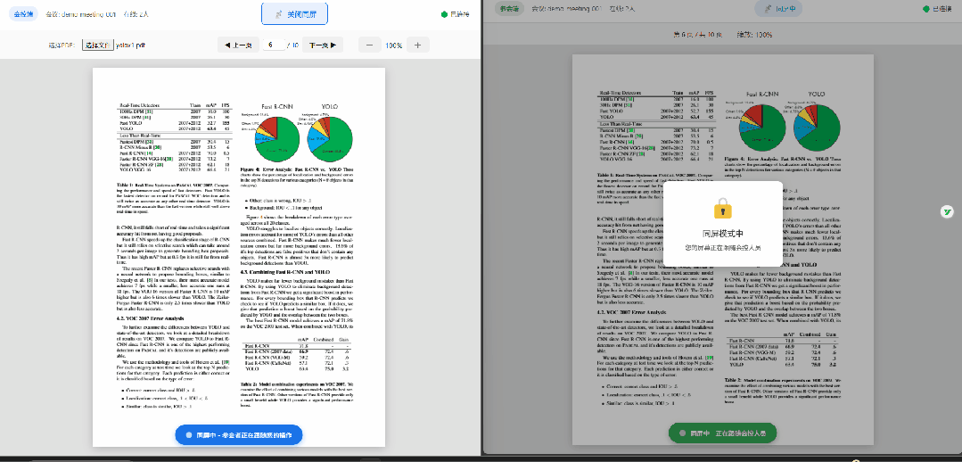 wsManager.on('SYNC_MODE_CHANGED', async (data) => {isSyncMode = data.is_sync_mode;updateSyncUI(isSyncMode); // 更新UI(显示"同屏中")if (isSyncMode && data.state) {// 如果开启同屏,立即加载会控端的当前状态if (data.state.document_url && data.state.document_url !== currentDocumentUrl) {await loadDocument(data.state.document_url); // 加载PDF}await pdfManager.applyState(data.state); // 应用页码、缩放等updatePageDisplay(data.state.page_number, data.state.total_pages);updateScaleDisplay(data.state.scale);}});