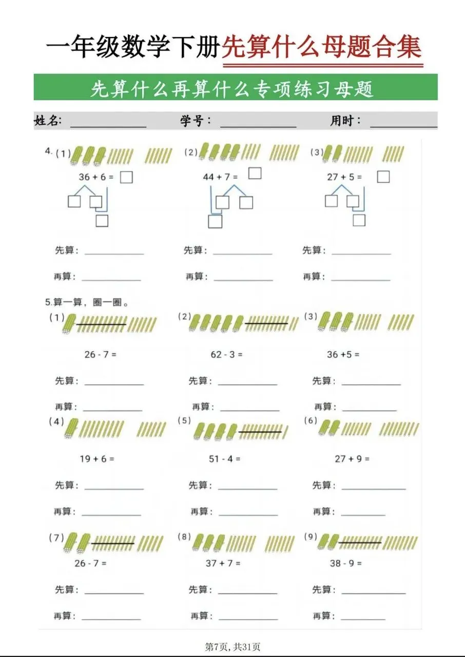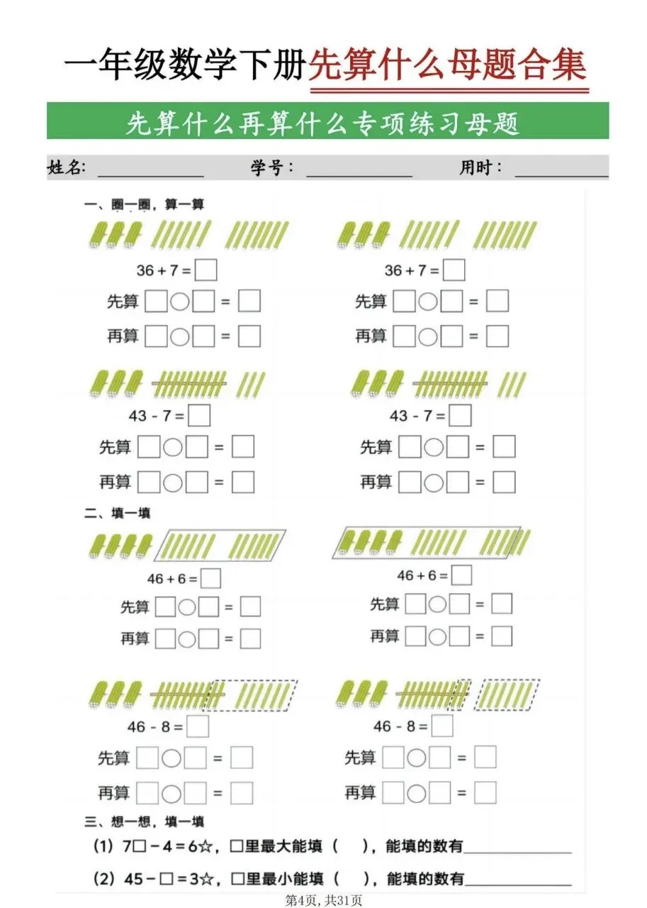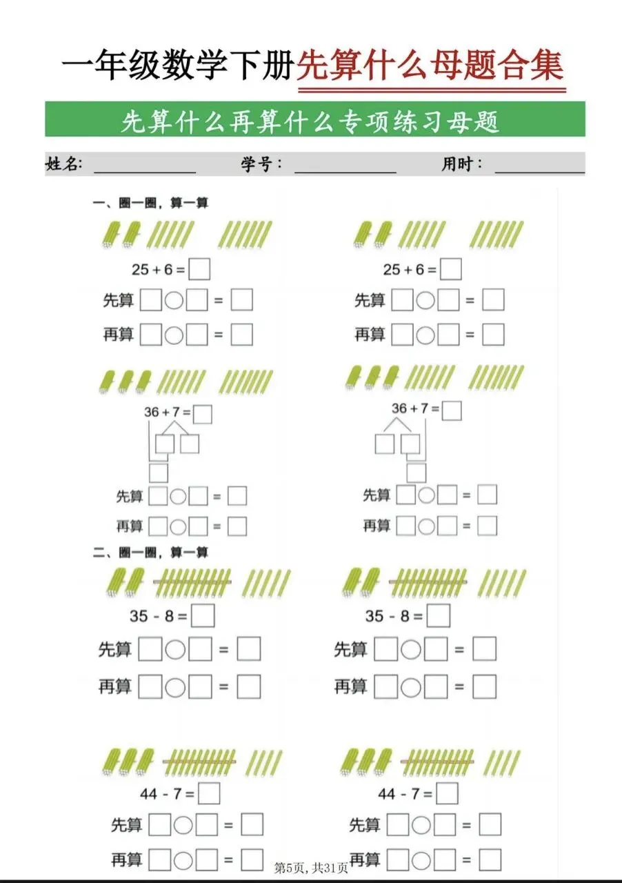 一年级(下)数学 九大母题合集(电子版,可打印)