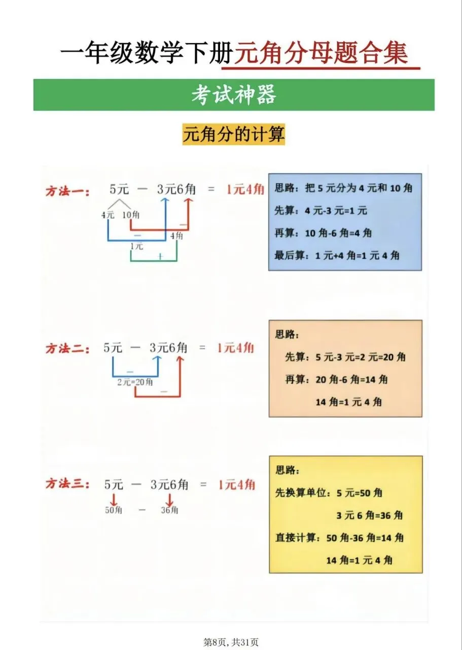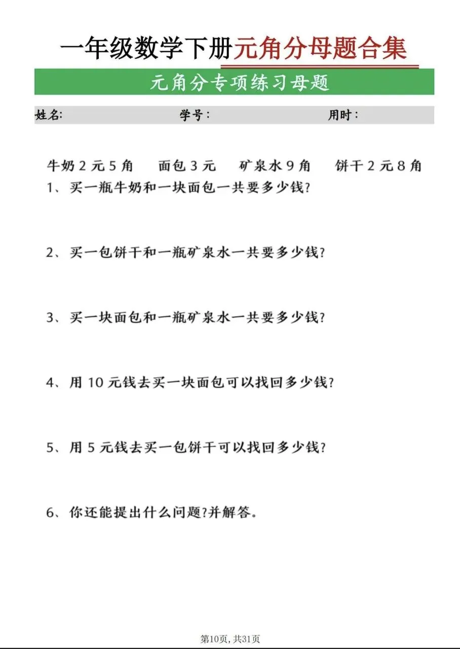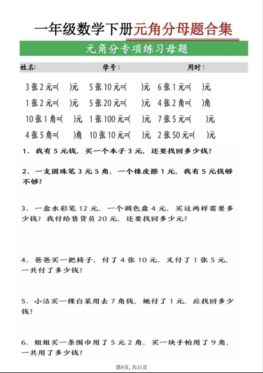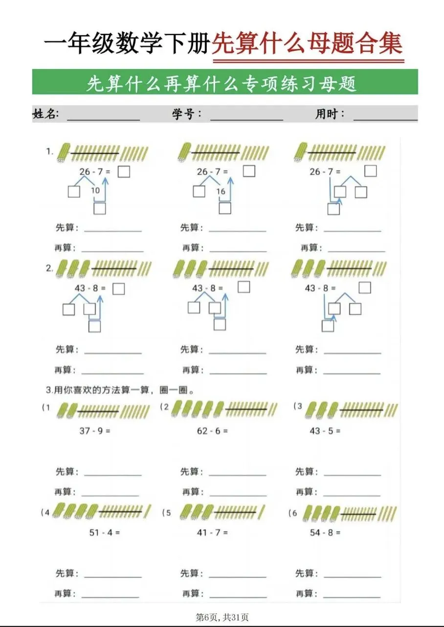 一年级(下)数学 九大母题合集(电子版,可打印)