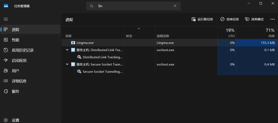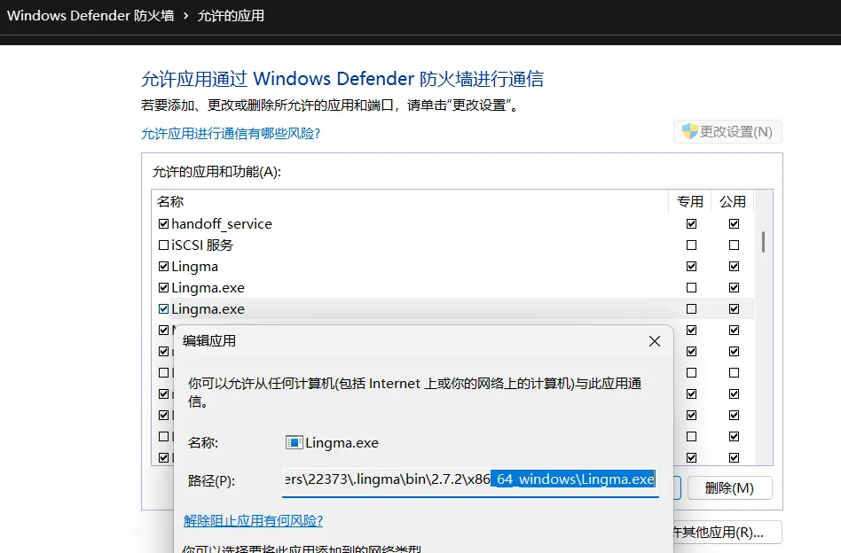 不知道lingma.exe位置的情况下,打开任务管理器,在pycharm中登录会启动lingma.exe只是如果防火墙限制访问,则无法正常登录。每次灵码版本升级,其路径变了就又被防火墙限制访问,需再次添加到防火墙允许列表。