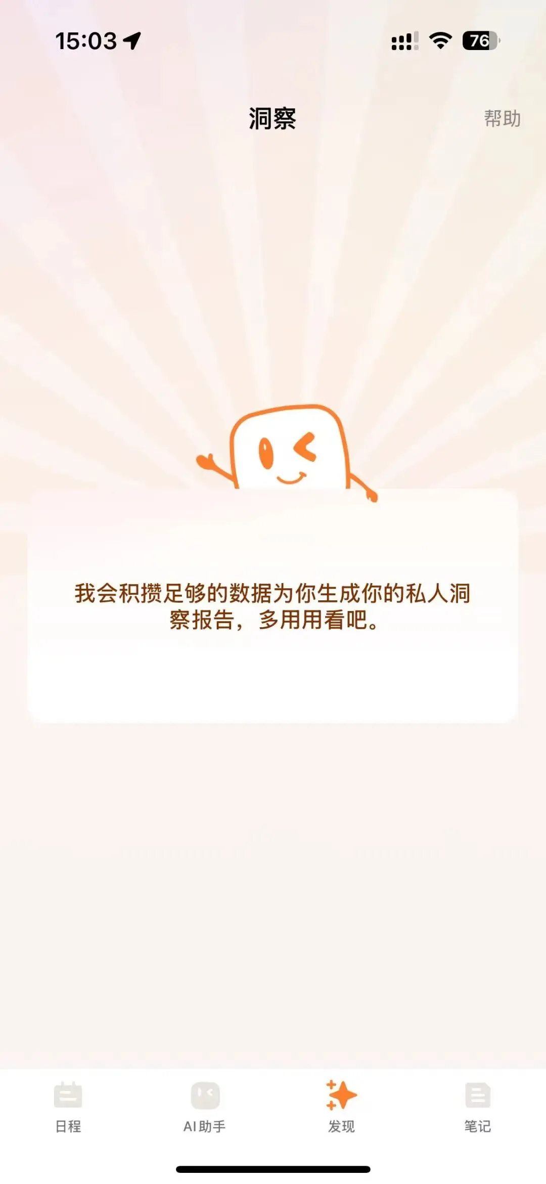 与其做洞察,不如总结用户习惯去帮助用户做预测,比如:总结用户每周一下午通常会被会议占满,所以提醒用户周一上午要抓紧把事情处理完。这个需求看起来会比较aha,SmoreAi的产品经理看到这个建议记得v我50。