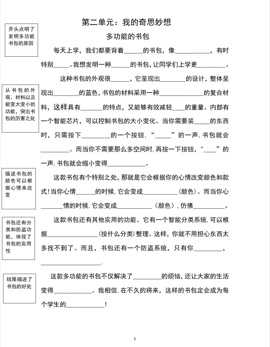 四年级下册语文习作填空习作支架与范文|可打印